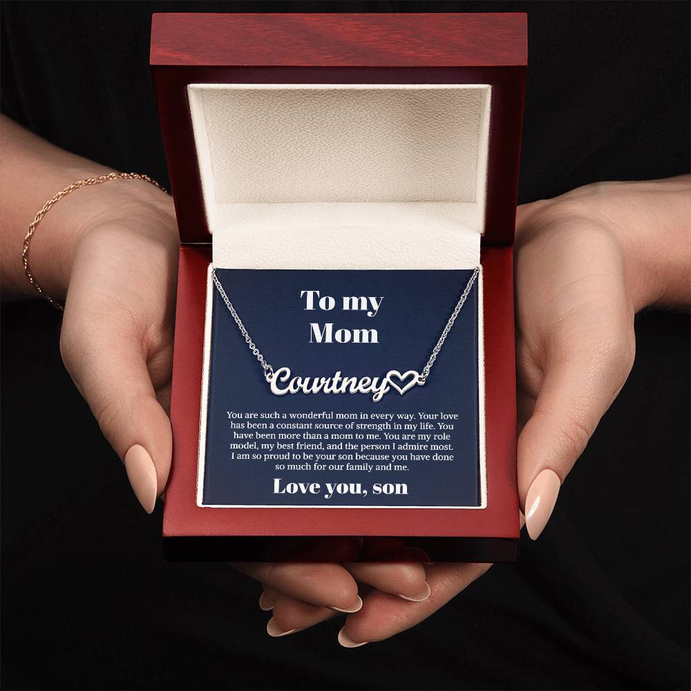 To My Mom Gifts - Necklace for Mom - Necklace Gift for Mom from Daughter - Heart Name Necklace Card