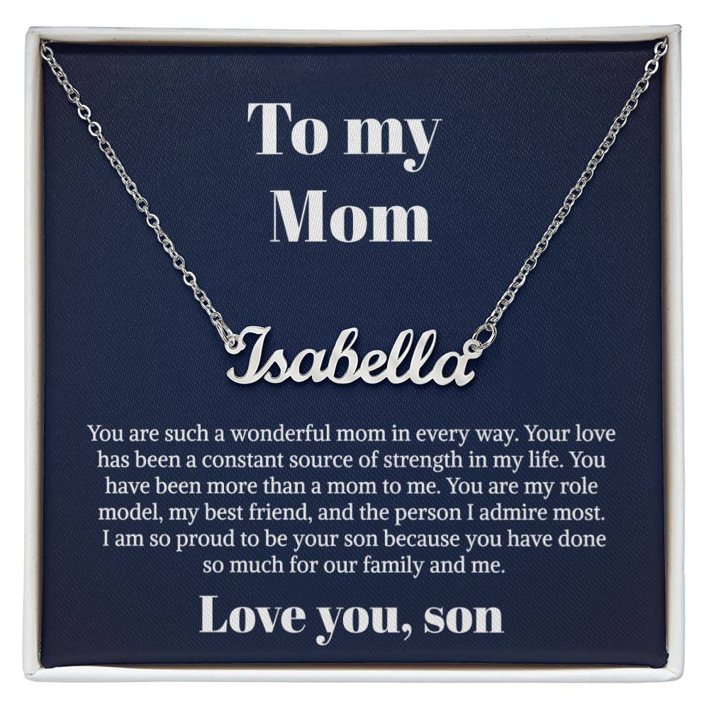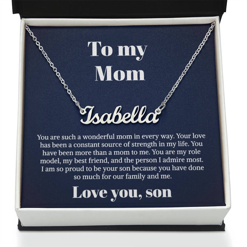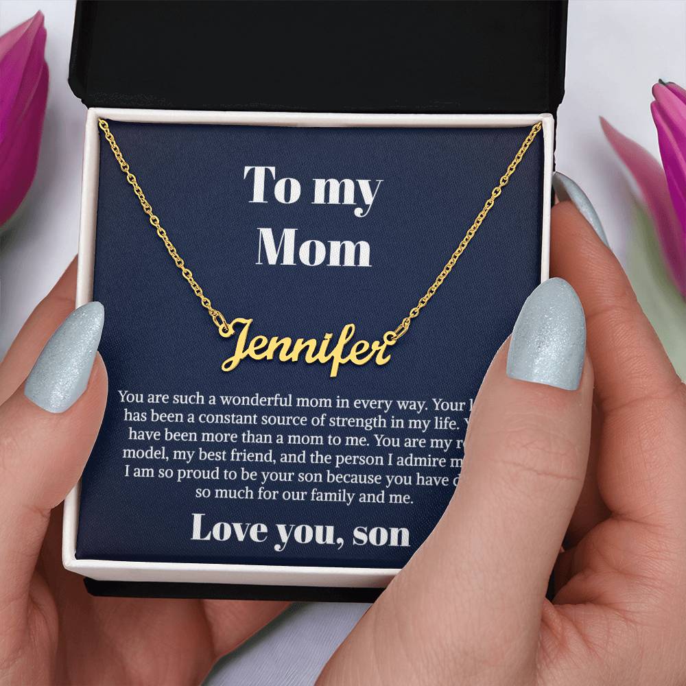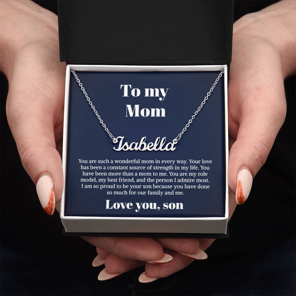To My Mom Necklace From Son Personalized Name Necklace For Mom, To My Boyfriend Mom, My Girlfriend Mom On Mother's Day, Birthday With Message Card Box