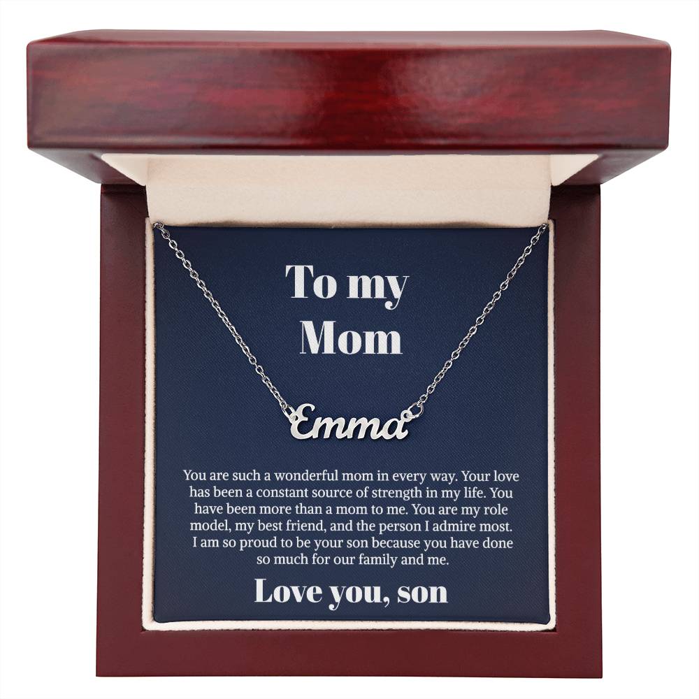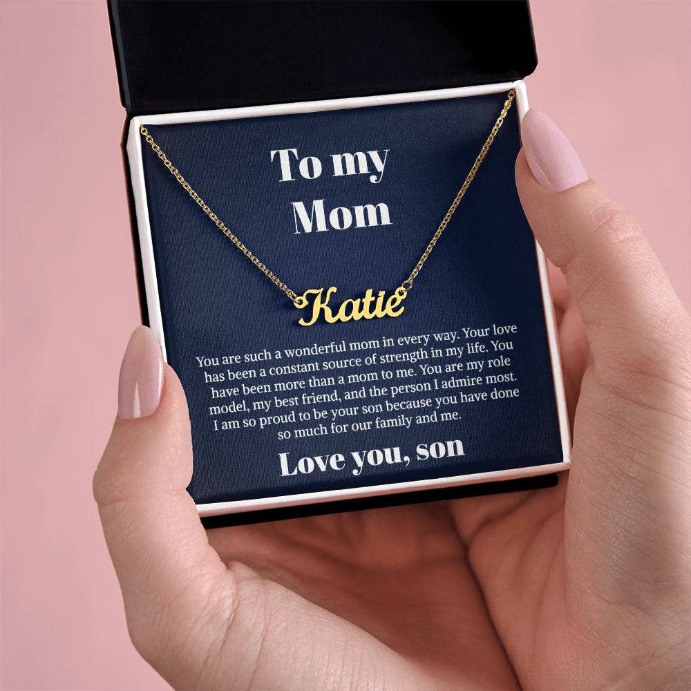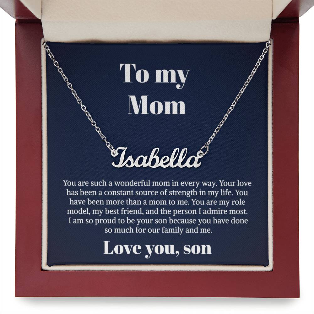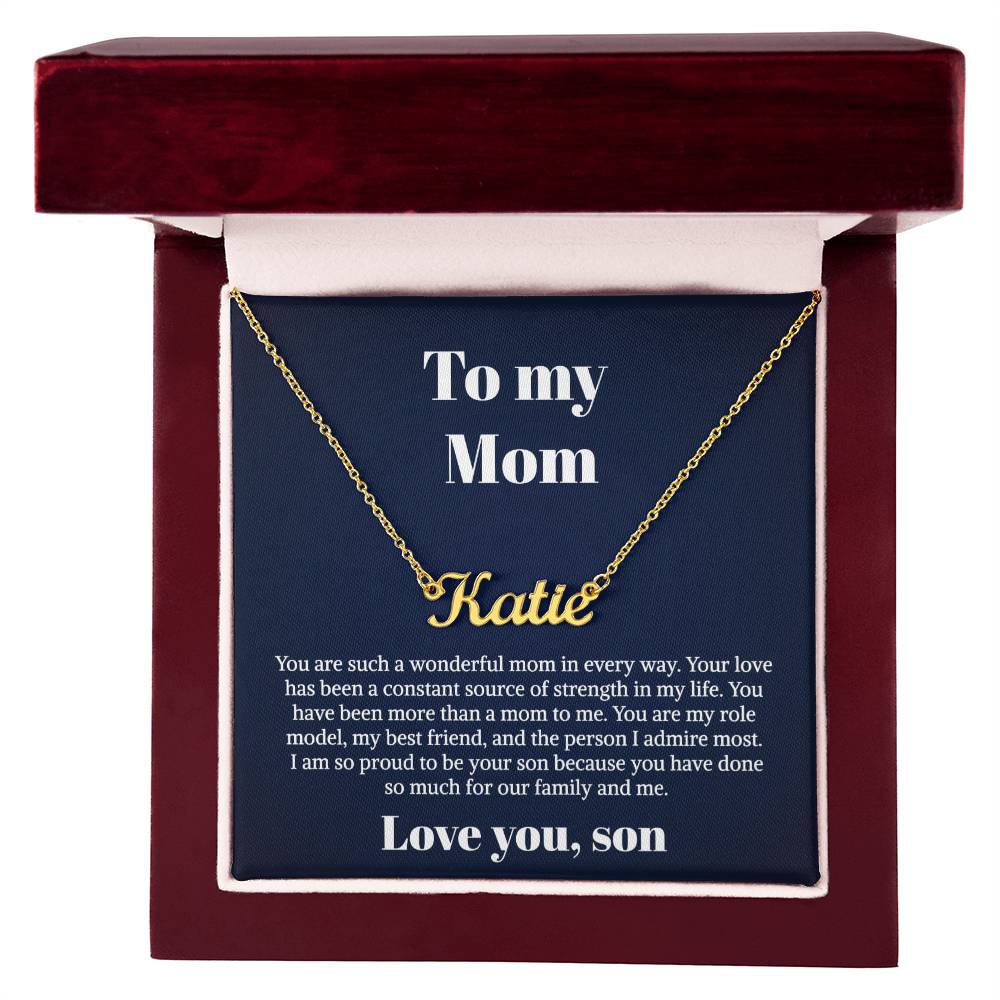 To My Mom Necklace From Son Personalized Name Necklace For Mom, To My Boyfriend Mom, My Girlfriend Mom On Mother's Day, Birthday With Message Card Box