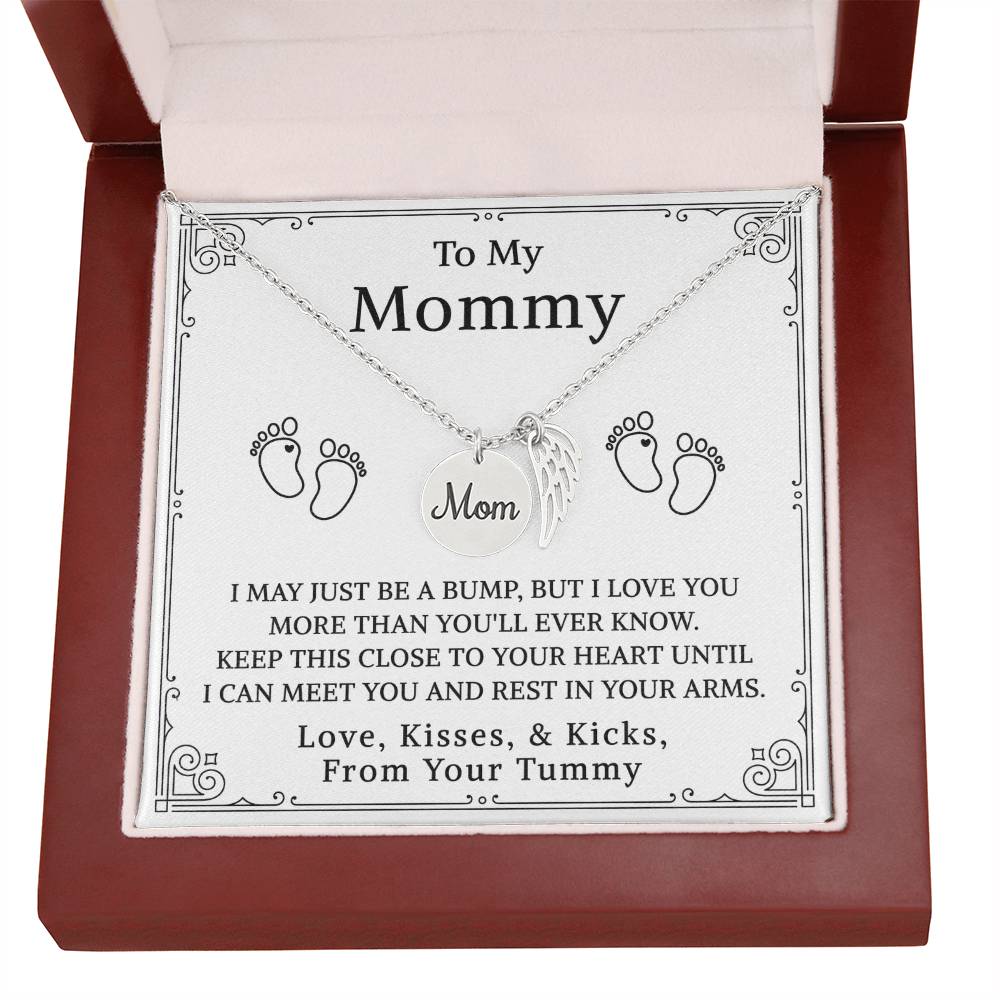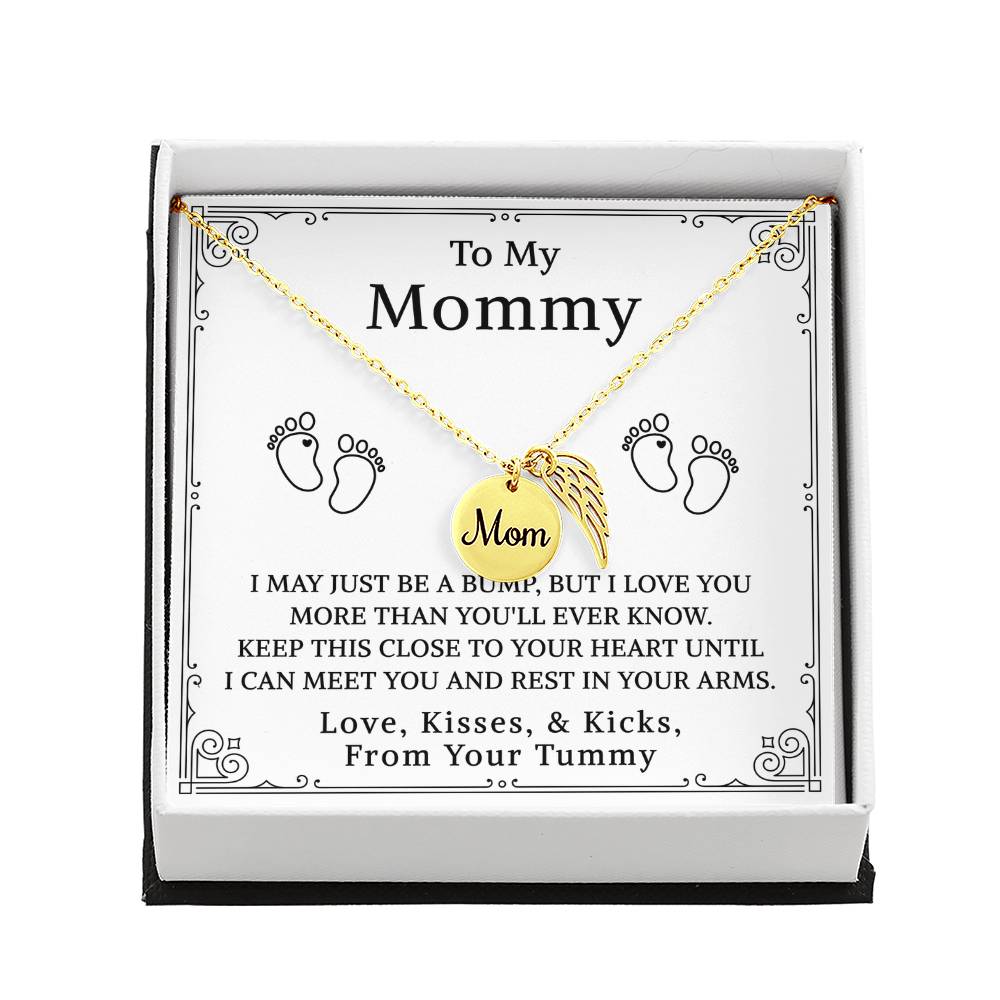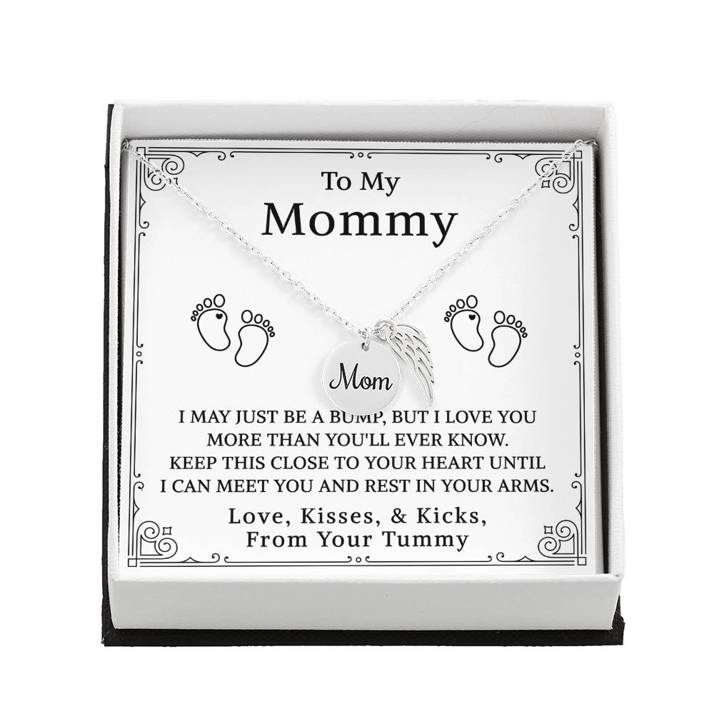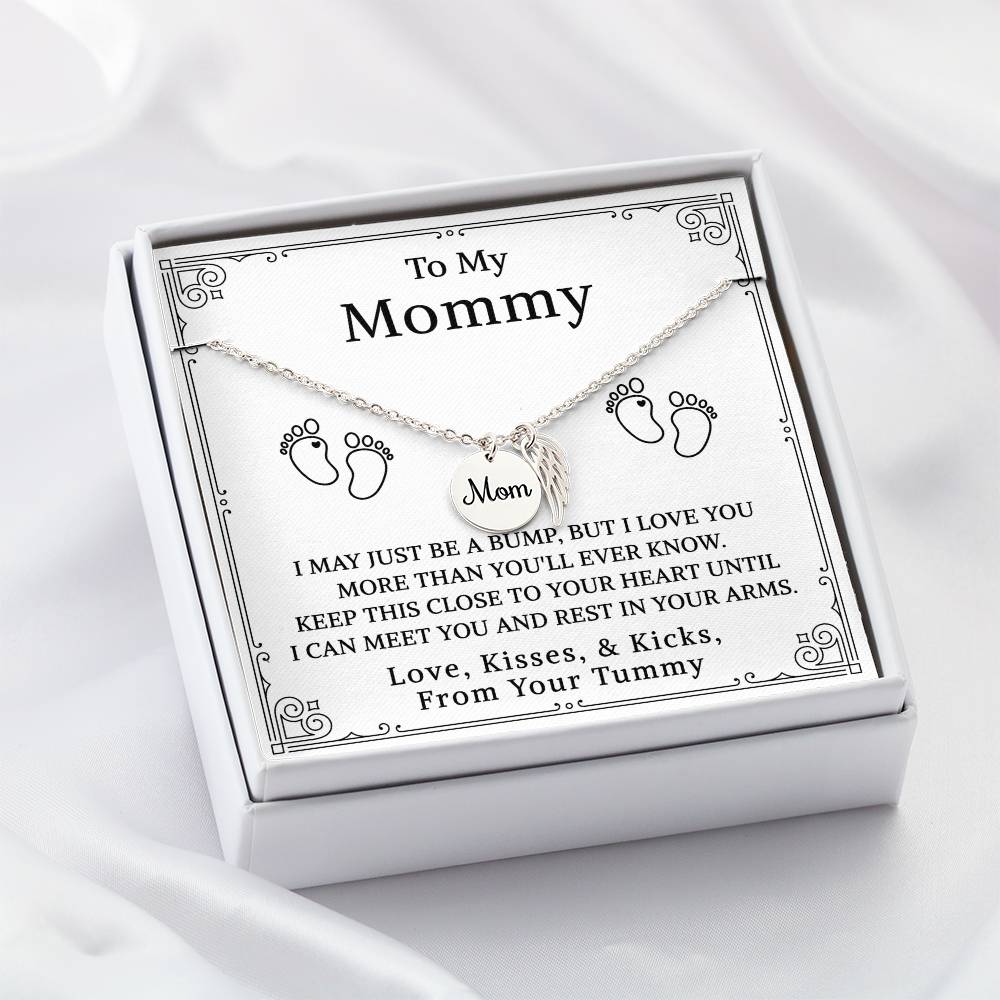 Carry your cherished memories of Mom with you always, thanks to our heartfelt Memorial Necklace. The word "Mom" is elegantly engraved on a delicately hand-polished coin, accented with black enamel for a striking contrast. This coin is beautifully paired with a delicate, polished Angel Wing tag, creating a meaningful and stylish accessory that keeps Mom's spirit close to your heart.