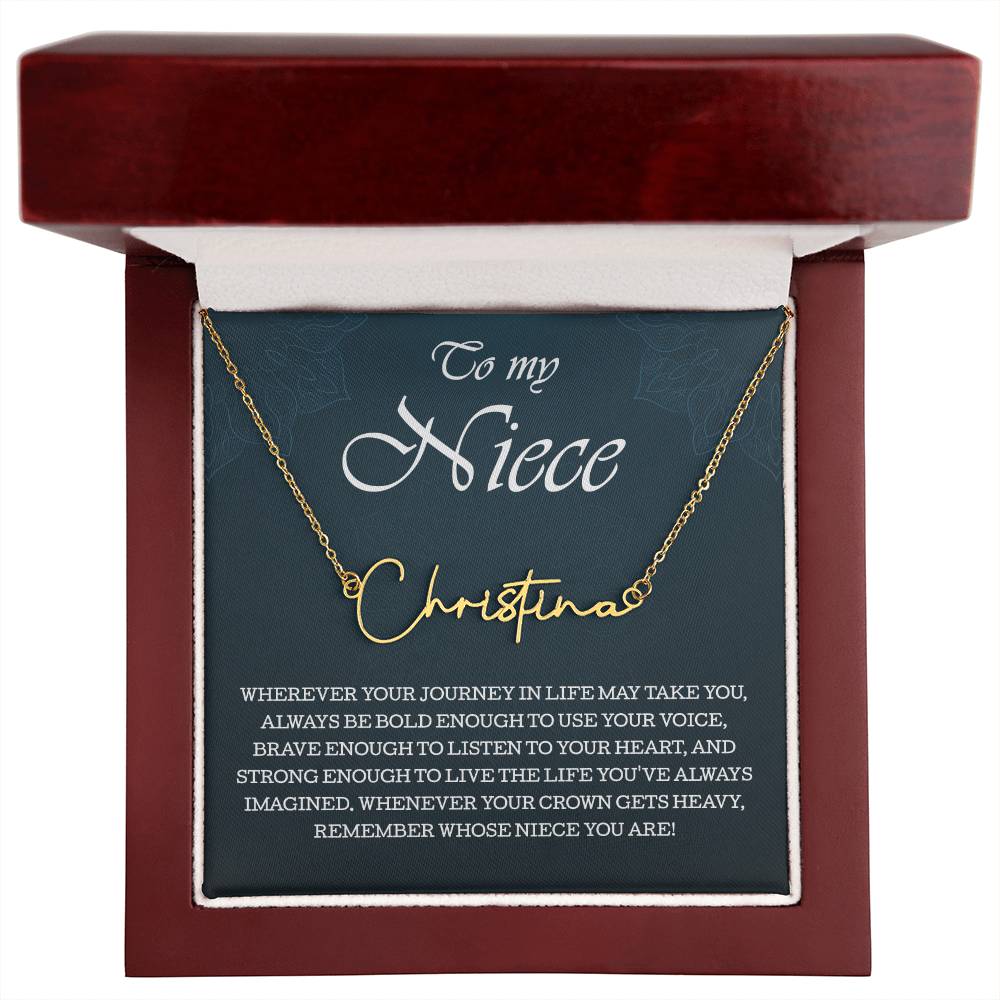 To My Niece Signature Style Name Necklace , Perfect Birthday or Graduation Gift with Blessing Card and Gift Box Packaging