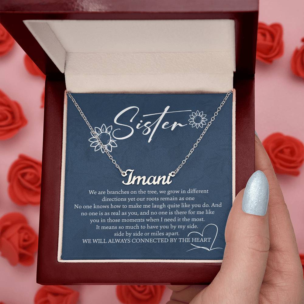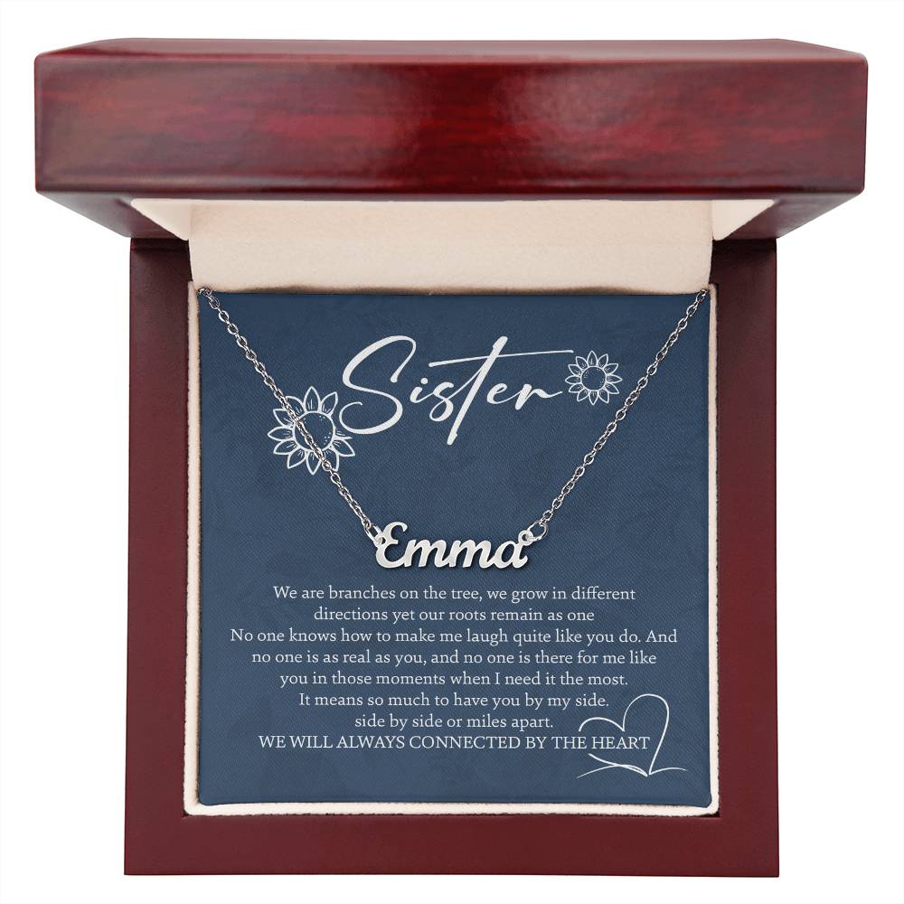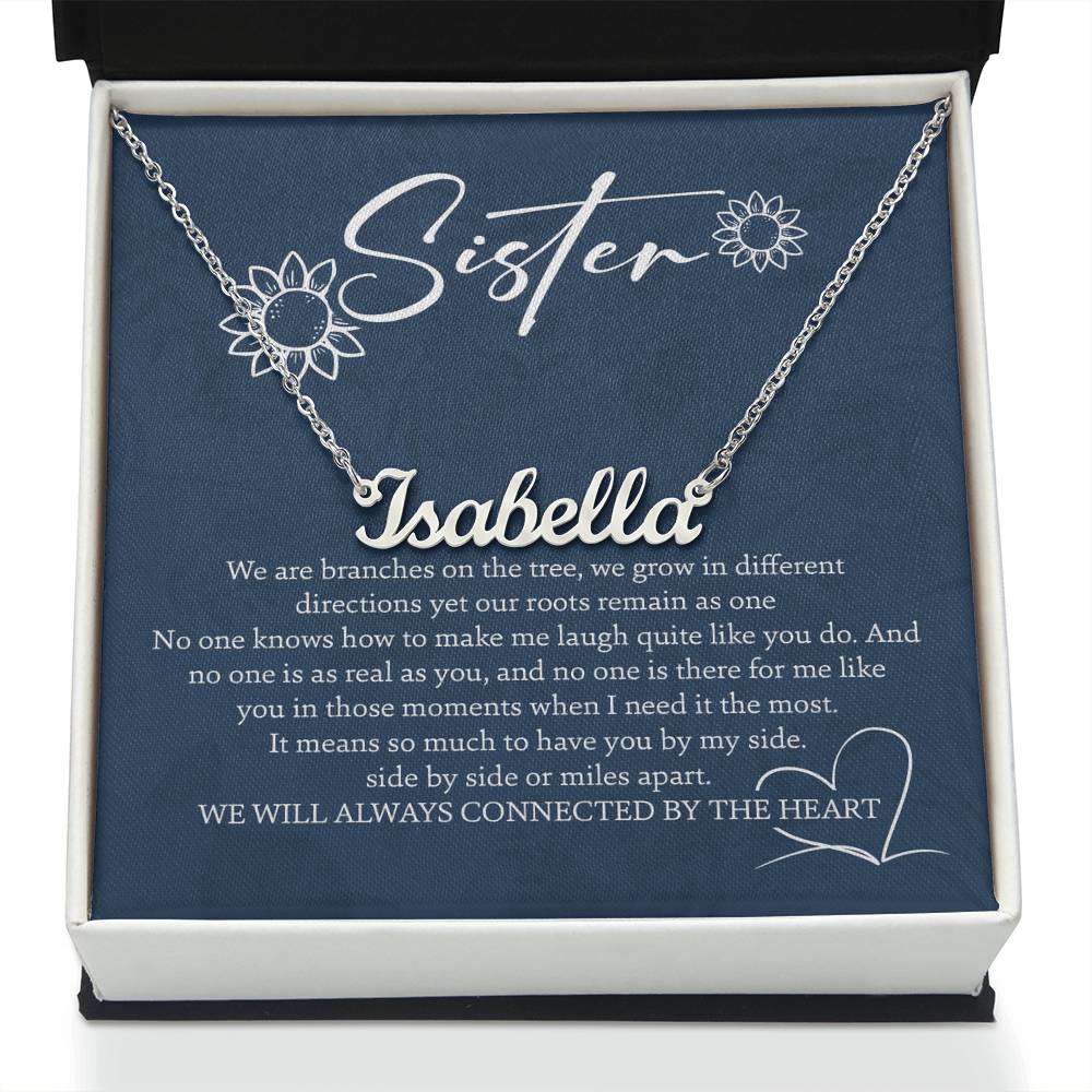 To My Sister Personalized Name Necklace for Sister, Sister Birthday, Graduation, Wedding with Sentimental Message Card, Box Included