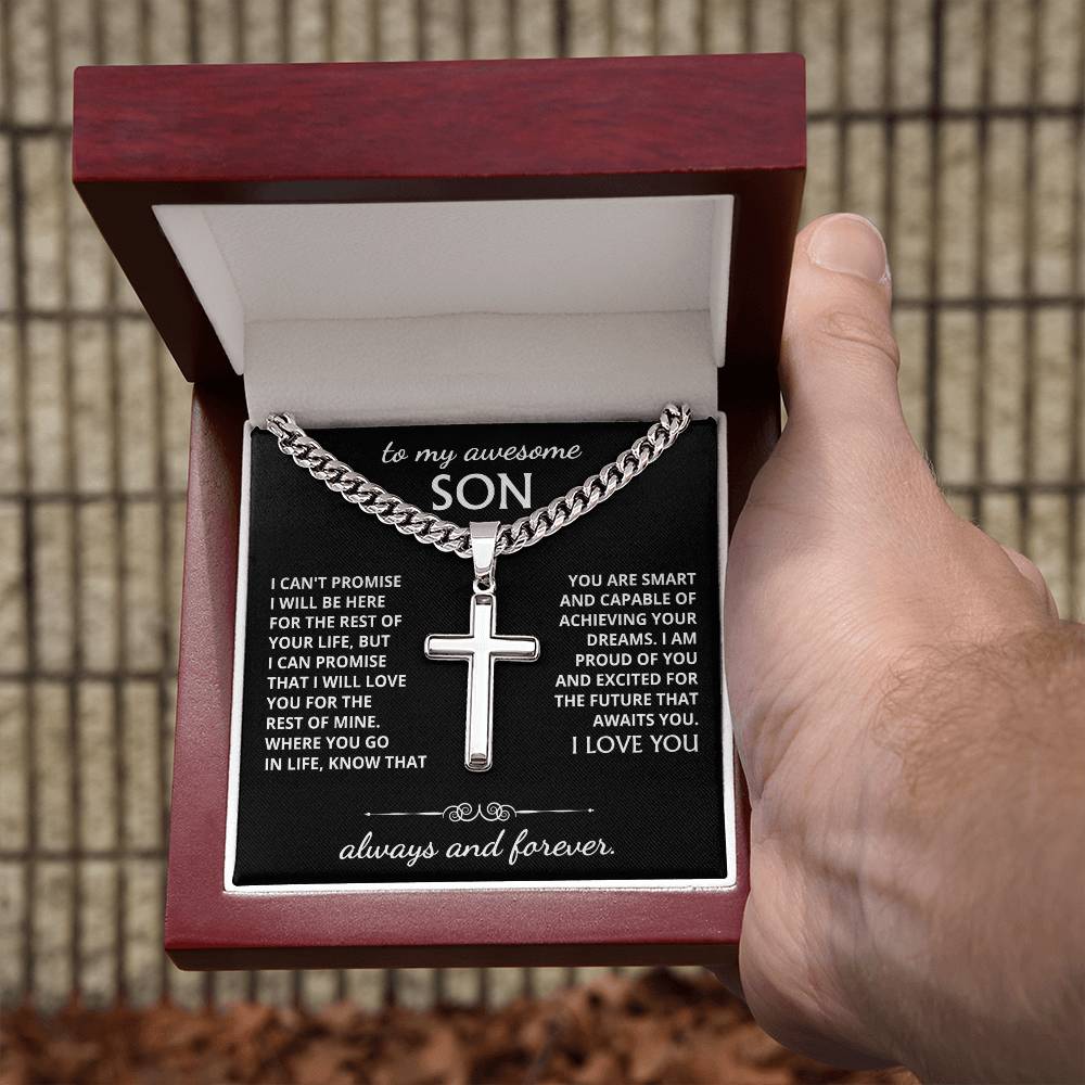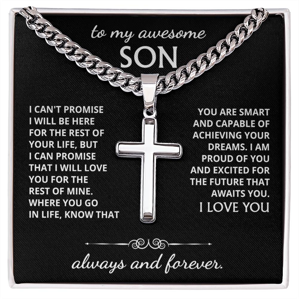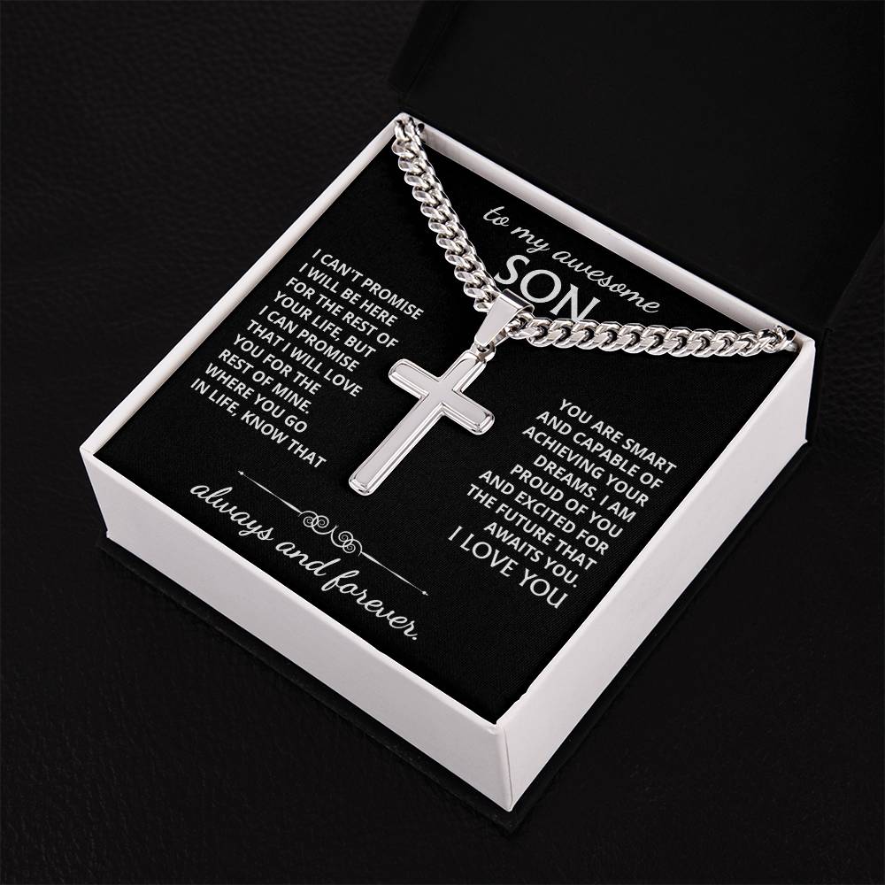 To My Son Cuban Chain With Artisan Cross Necklace, Birthday Gift Necklace For Son, Gift From Dad, Mom, Graduation Gift Necklace For Son, Birthday Gift Cross Necklace