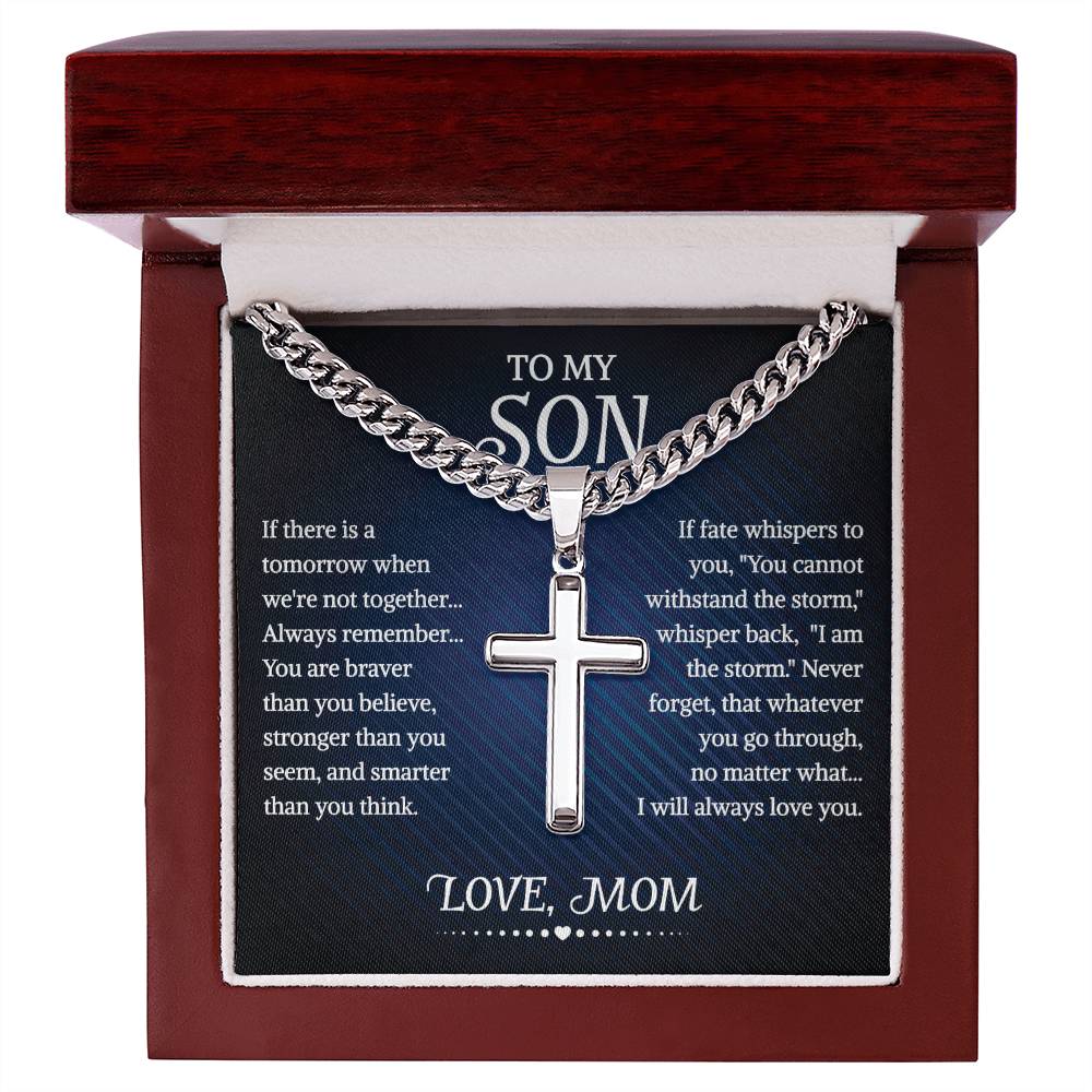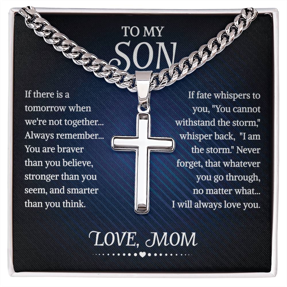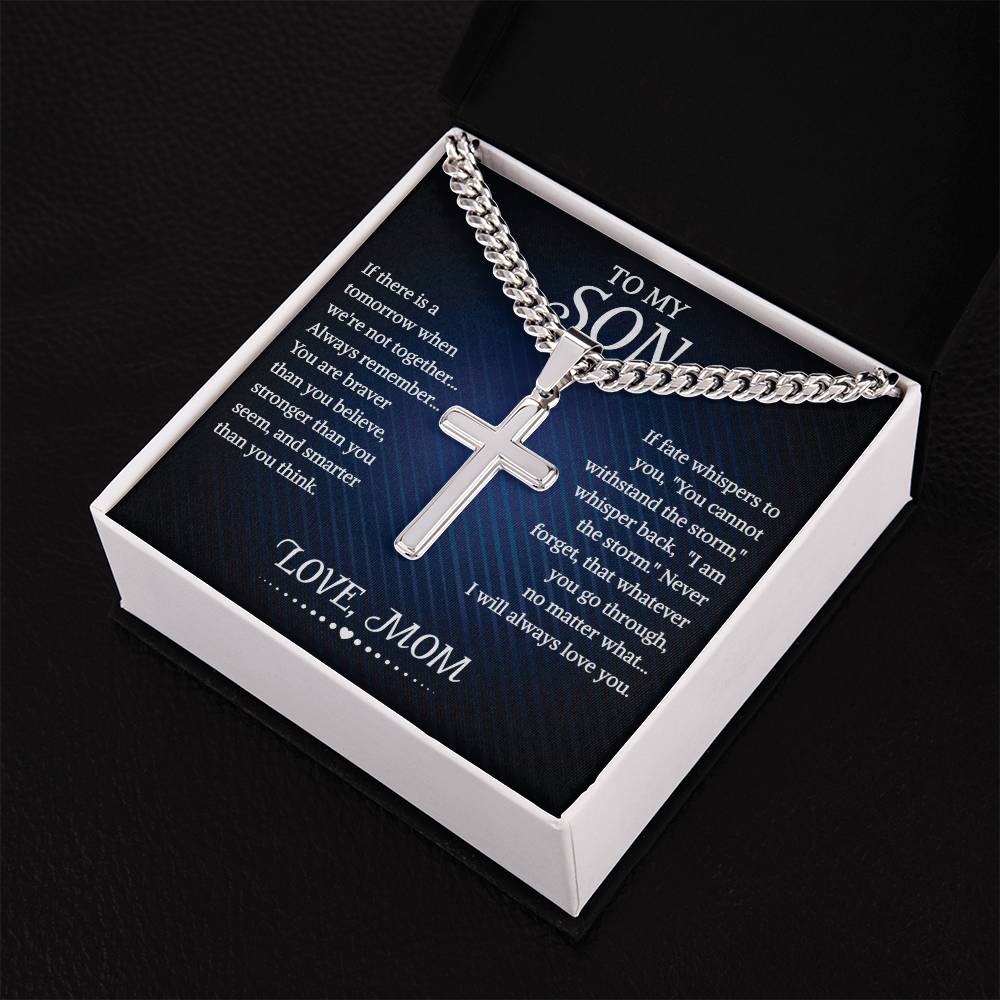 To My Son Cuban Chain With Artisan Cross Necklace From Mom, With Message Card And Gift Box, Necklaces For Birthday, Anniversary, Christmas Gift