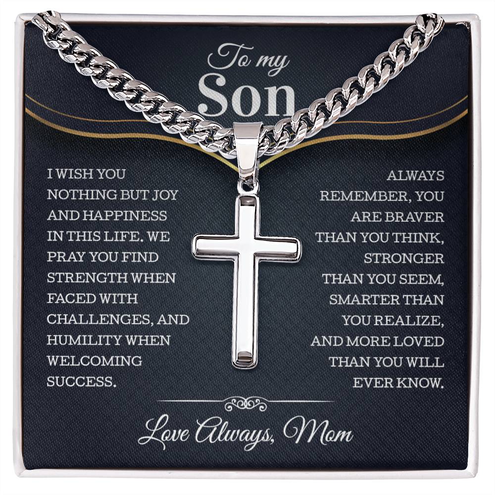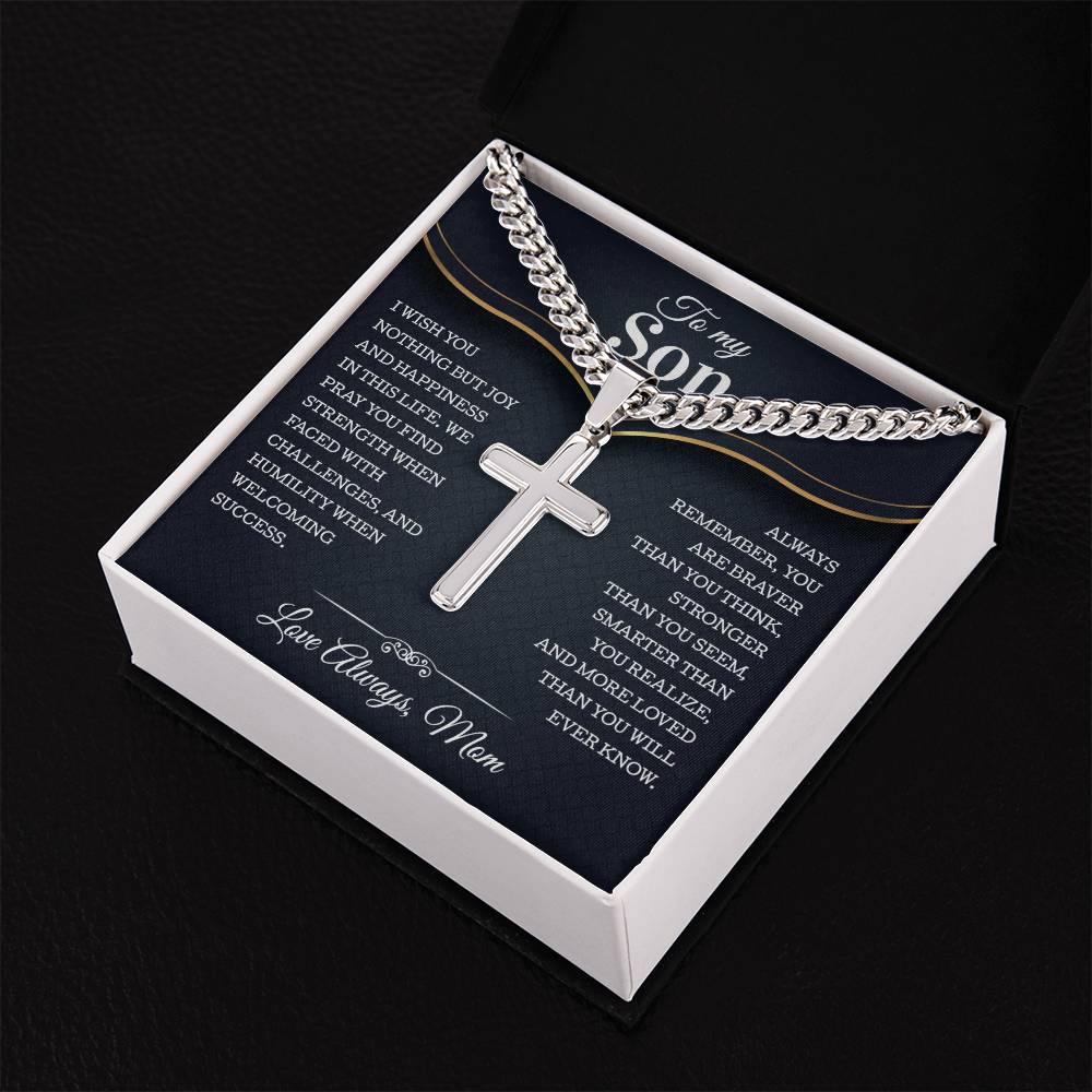 To My Son From Mom, Son Gifts From Mom and Dad, Mother and Son Necklace, Birthday Gift For My Son Christmas Cuban Chain With Artisan Cross Necklace