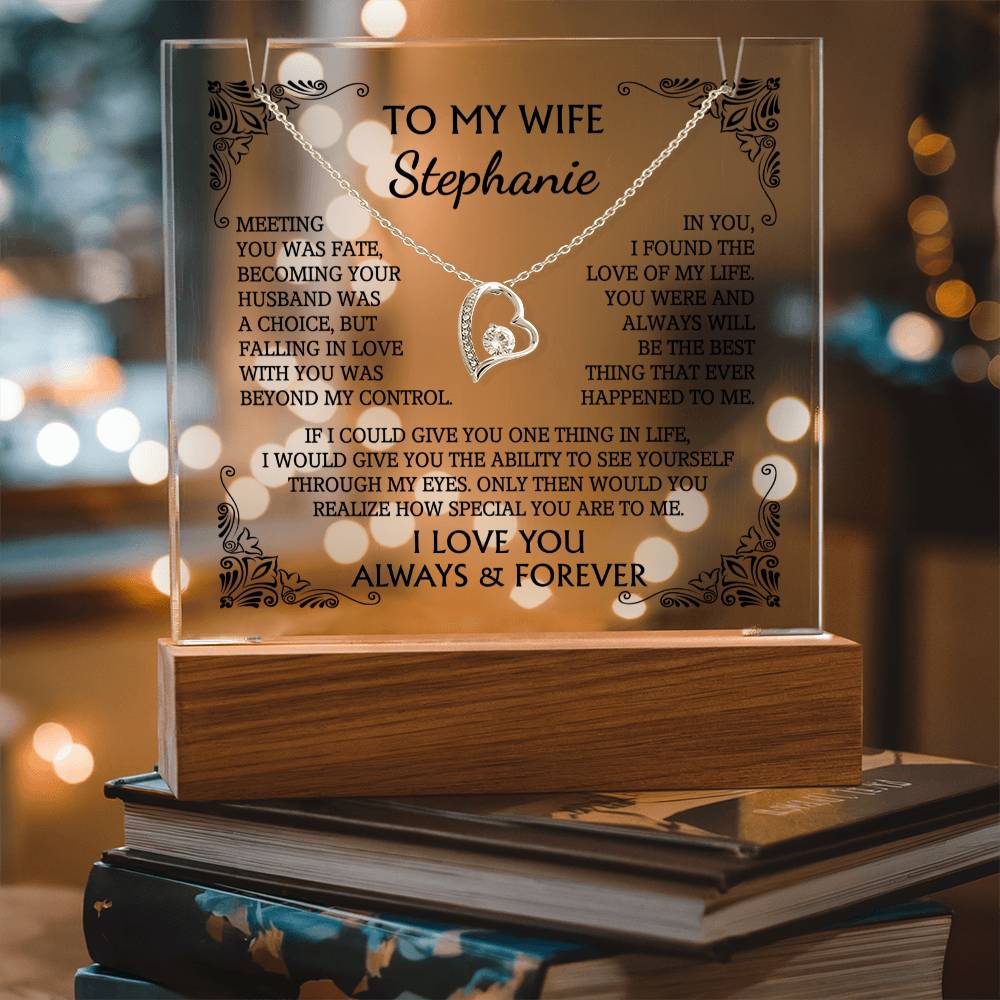 Celebrate your love and appreciation with our elegant Keepsake Acrylic Bundle, featuring a stunning Square Acrylic and the beautiful Forever Love Necklace. Your personalized design is showcased on crystal-clear acrylic, making this set a striking focal point in any space. Paired with the charming Forever Love Necklace, this bundle is the perfect gift for anniversaries, birthdays, or any special occasion when you want to make a lasting impression.