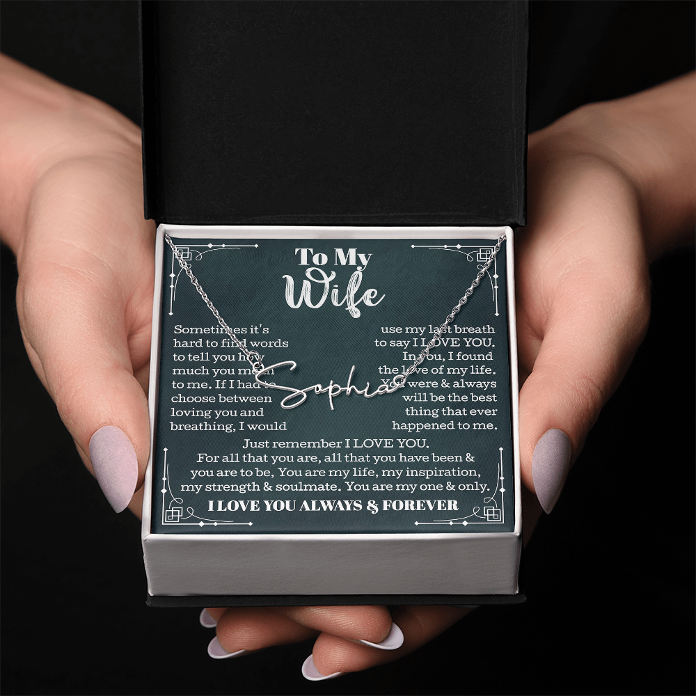 Looking to give your loved one a stylish and personalized gift that will melt their heart? Check out our Signature Style Name Necklace! This adorable custom necklace features a contemporary font that is sure to become a favorite accessory! From a heart-warming holiday present, special occasion gift, or just because, this unique necklace adds a trendy touch to any outfit