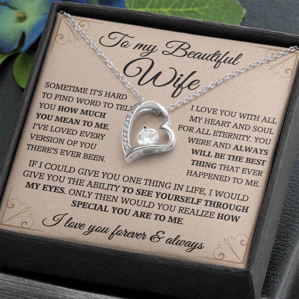 The dazzling Forever Love Necklace is sure to make her heart melt! This necklace features a stunning 6.5mm CZ crystal surrounded by a polished heart pendant embellished with smaller crystals to add extra sparkle and shine. Beautifully crafted with either a white gold or yellow gold finish, be sure to give her a classic gift she can enjoy everyday.