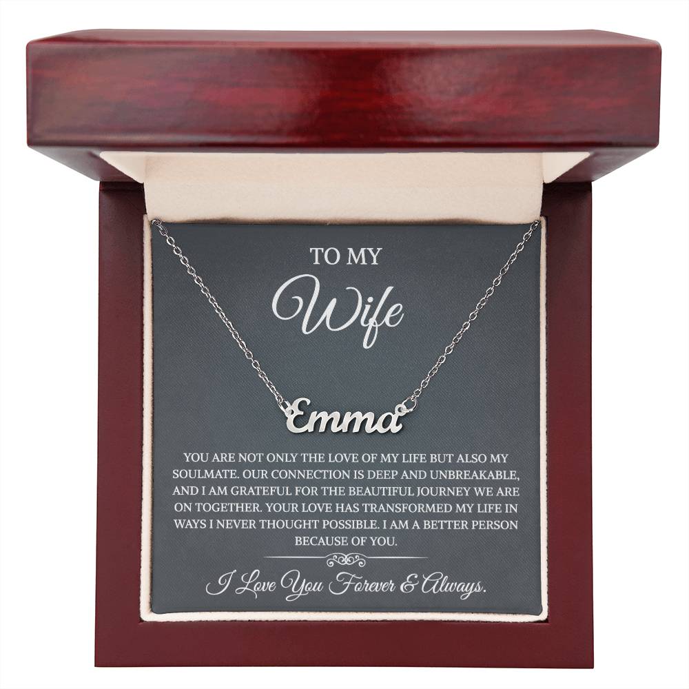 To My Wife Necklace from Husband with Message Card Romantic Gifts for Wife Name Necklace for Women, Wife Jewelry Rose Gold, Wife Birthday Anniversary Valentines Mothers Day Gifts