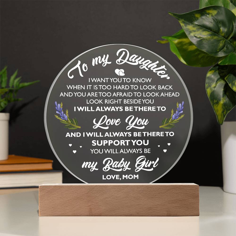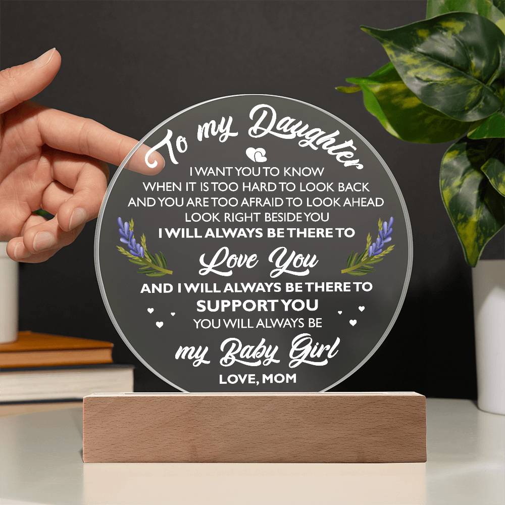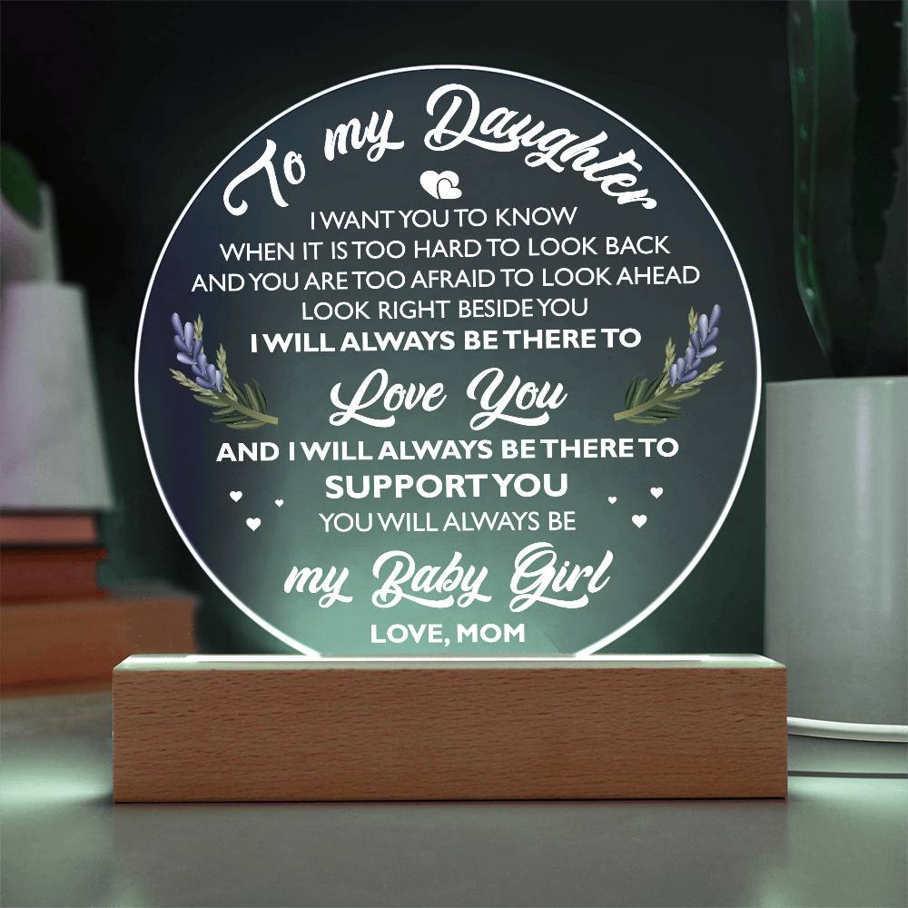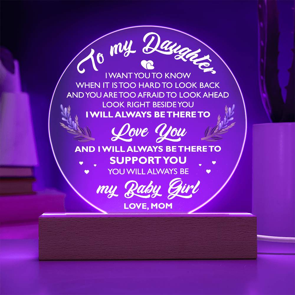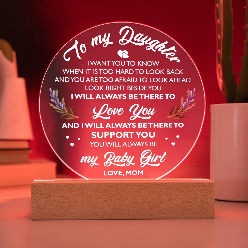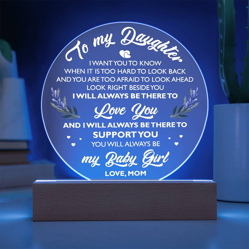 Your plaque will be crafted from premium acrylic with a professionally printed design for a polished look. It comes with a stylish wooden LED base, and you can choose between a USB plug-in option OR a cordless battery-operated option (requires 2 AAA batteries, not included). Both LED bases feature 7 vibrant colors, allowing the user to customize the lighting with various color changes and dynamic cycles.