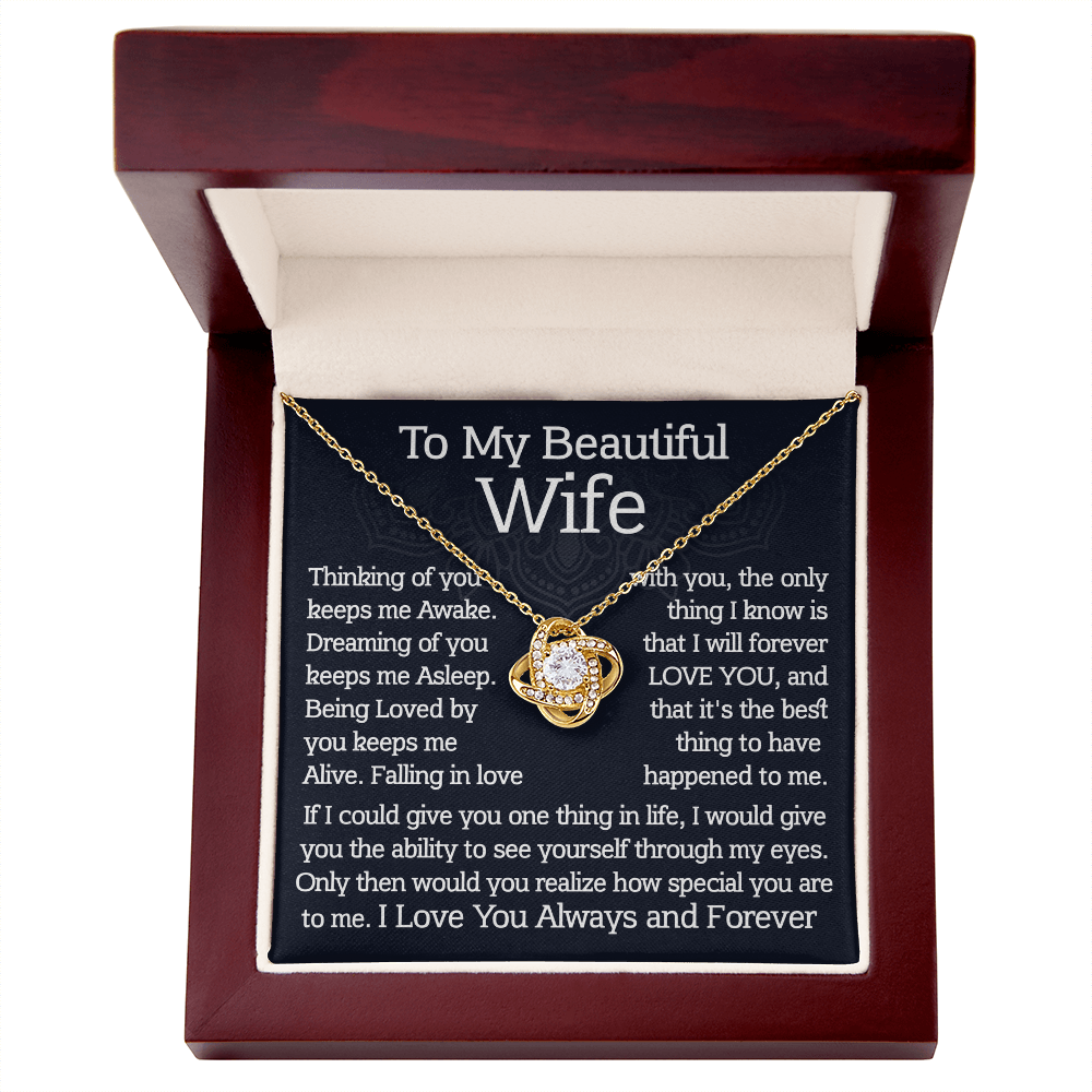 Imagine her reaction receiving this beautiful Love Knot Necklace. Representing an unbreakable bond between two souls, this piece features a beautiful pendant embellished with premium cubic zirconia crystals. Surprise your loved one with this gorgeous gift today!