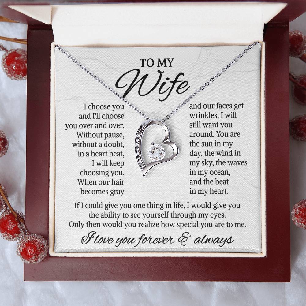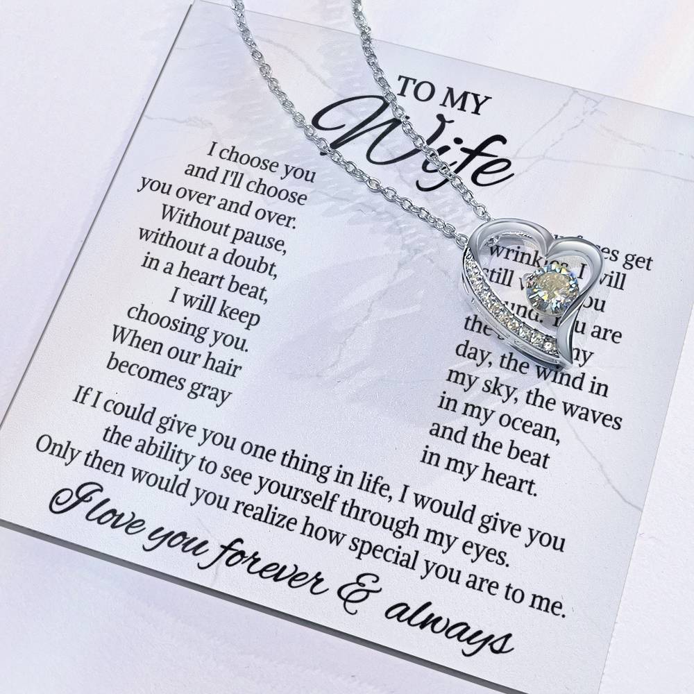 The dazzling Forever Love Necklace is sure to make her heart melt! This necklace features a stunning 6.5mm CZ crystal surrounded by a polished heart pendant embellished with smaller crystals to add extra sparkle and shine. Beautifully crafted with either a white gold or yellow gold finish, be sure to give her a classic gift she can enjoy everyday.