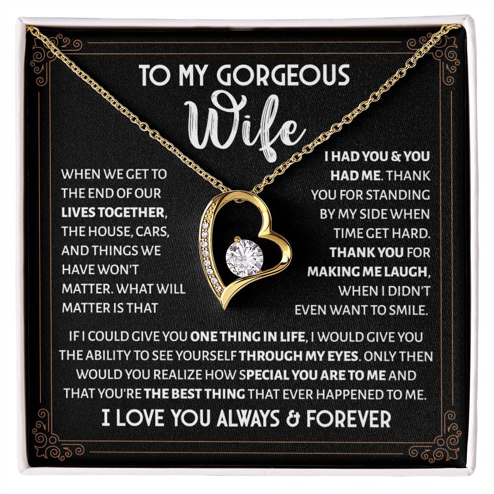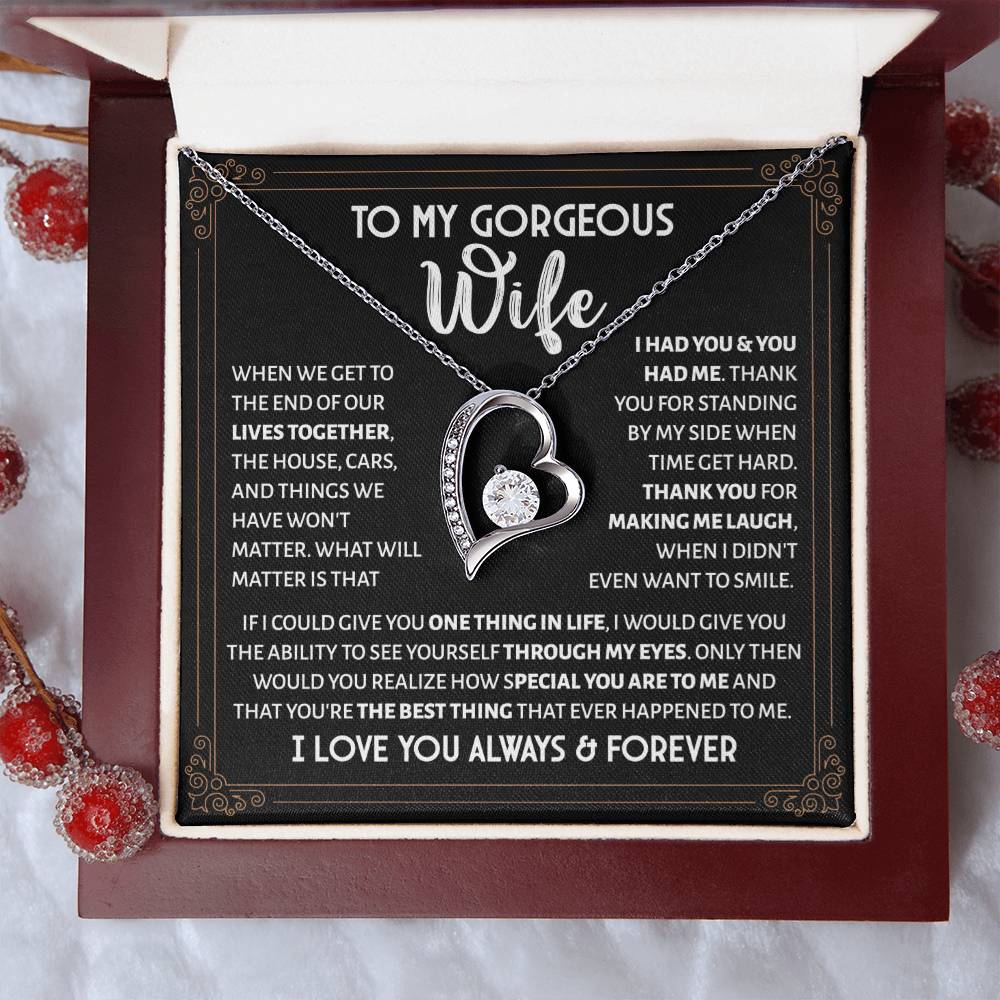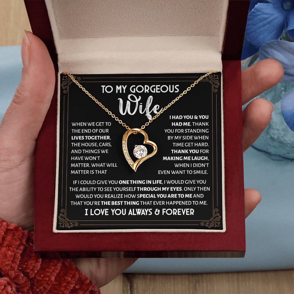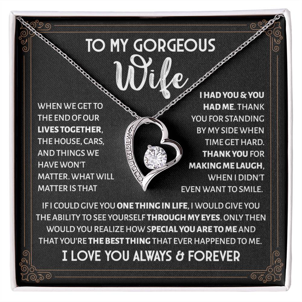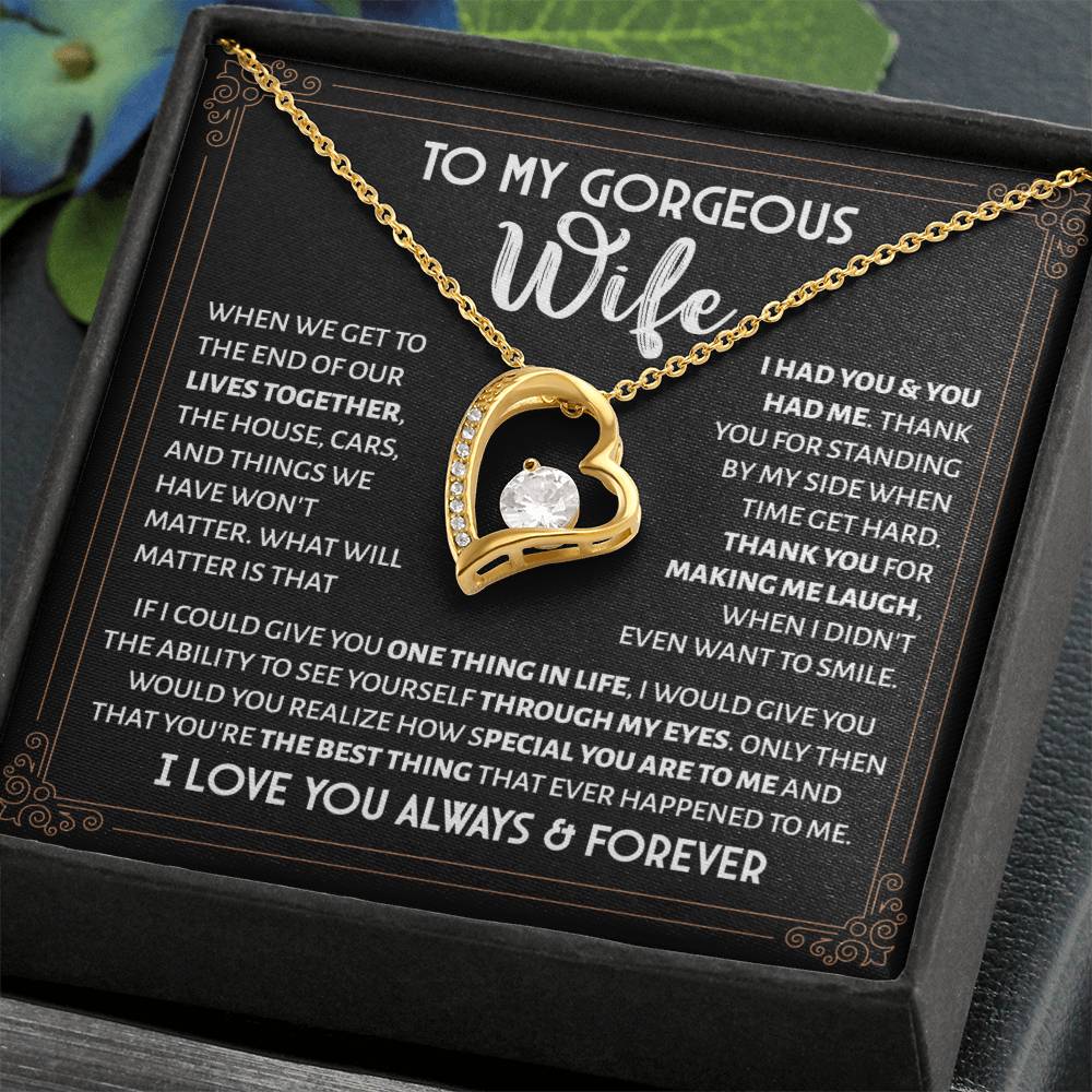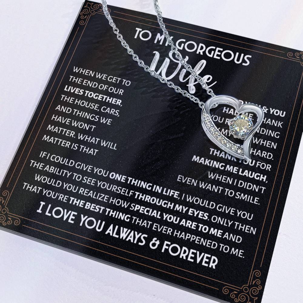 The dazzling Forever Love Necklace is sure to make her heart melt! This necklace features a stunning 6.5mm CZ crystal surrounded by a polished heart pendant embellished with smaller crystals to add extra sparkle and shine. Beautifully crafted with either a white gold or yellow gold finish, be sure to give her a classic gift she can enjoy everyday.