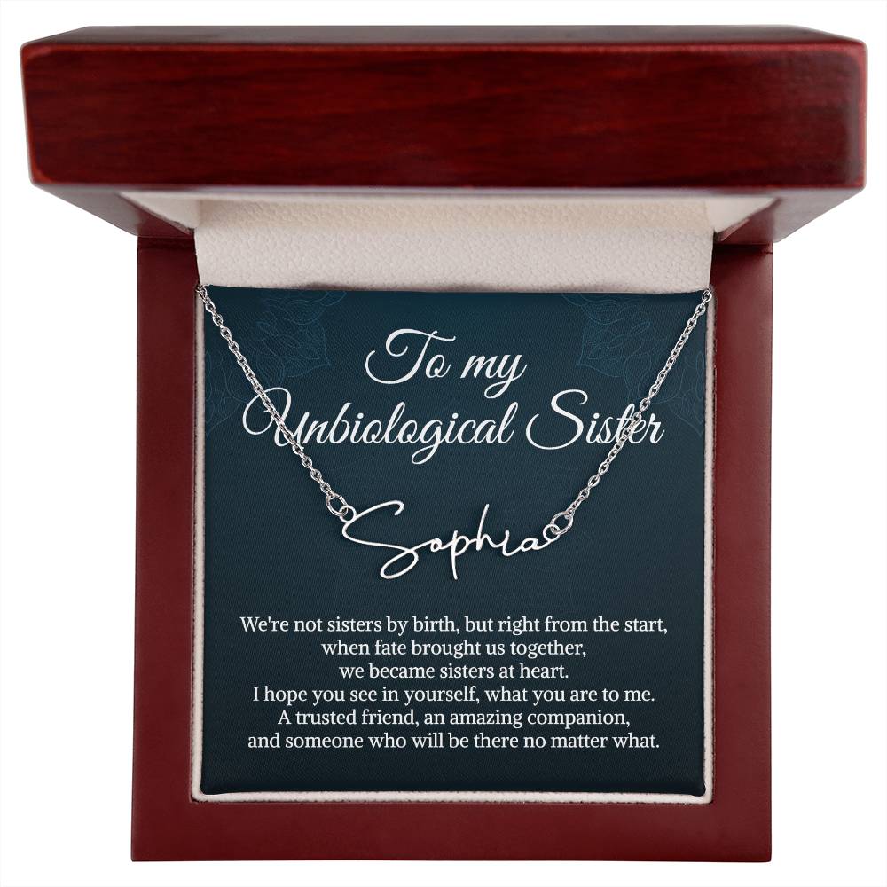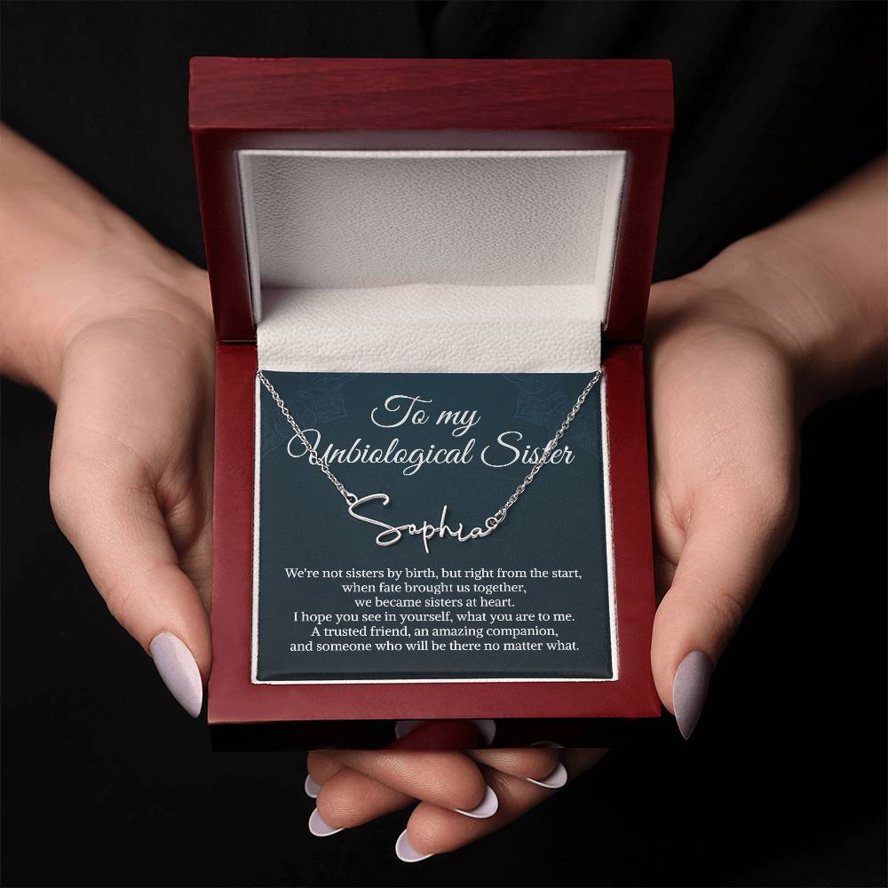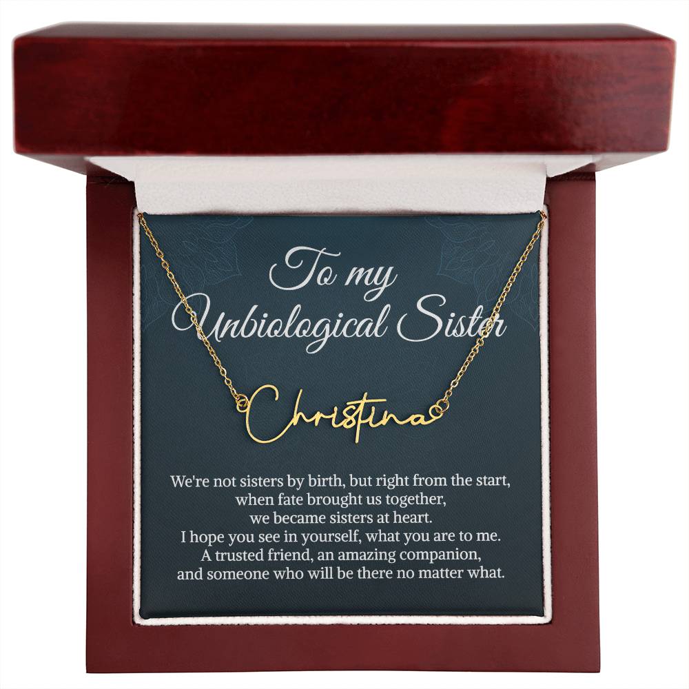 Unbiological Sister Signature Style Name Necklace Bonus Sister Necklace Sister in Law Necklace Name Necklace for Sister Birthday Gift from Sister Christmas Gifts