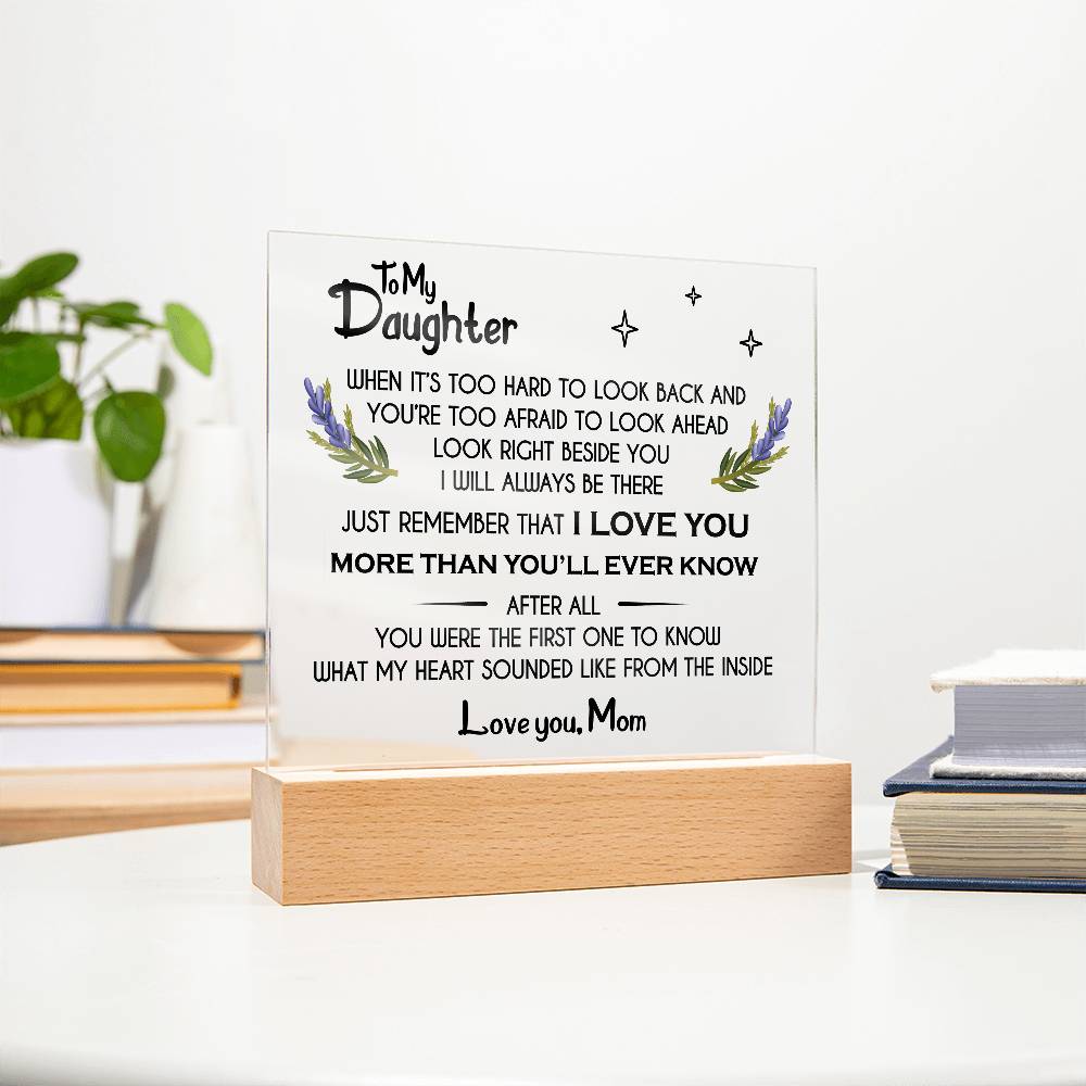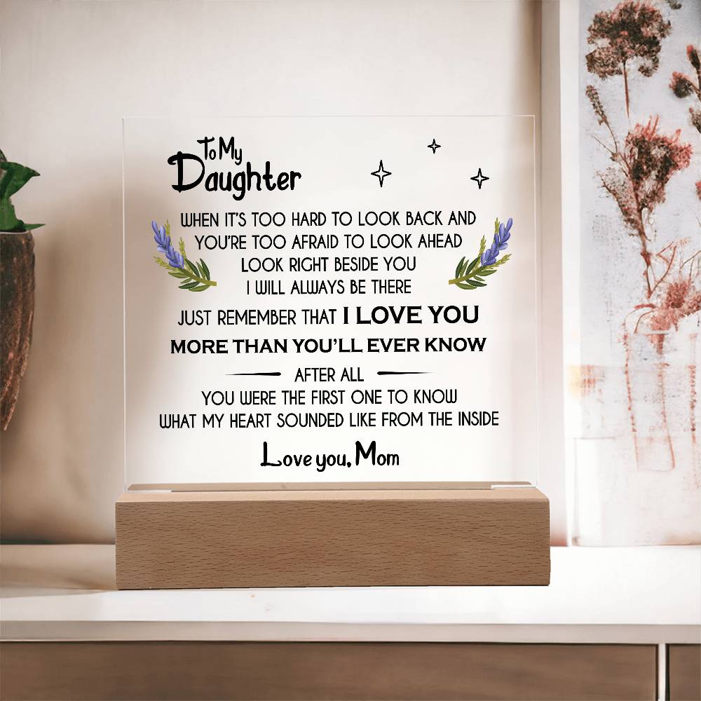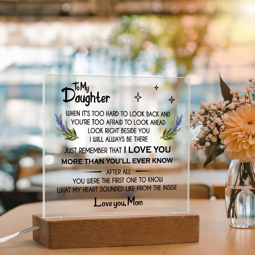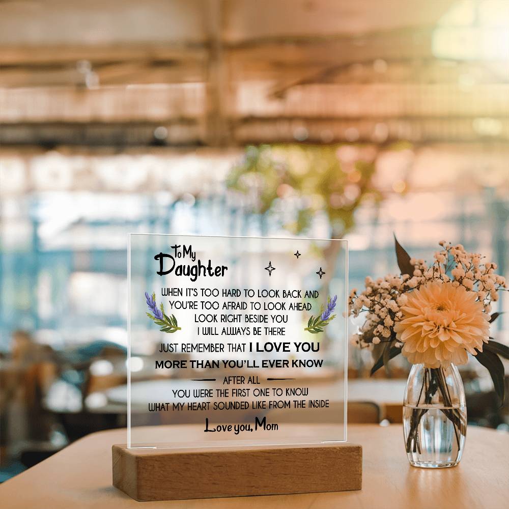 Your plaque will be crafted from premium acrylic with a professionally printed design for a polished look. It comes with a stylish wooden LED base, and you can choose between a USB plug-in option OR a cordless battery-operated option (requires 2 AAA batteries, not included). Both LED bases feature 7 vibrant colors, allowing the user to customize the lighting with various color changes and dynamic cycles.