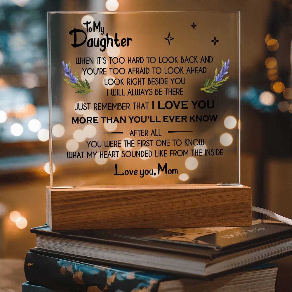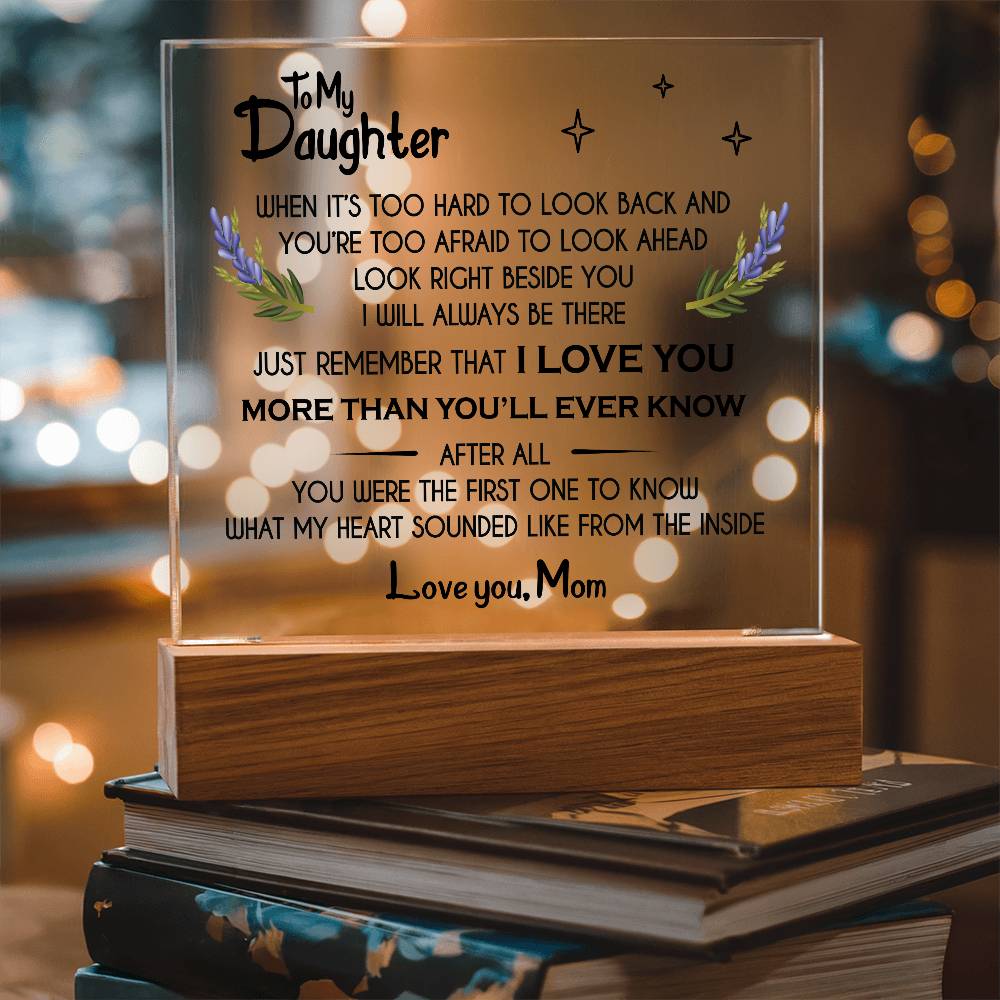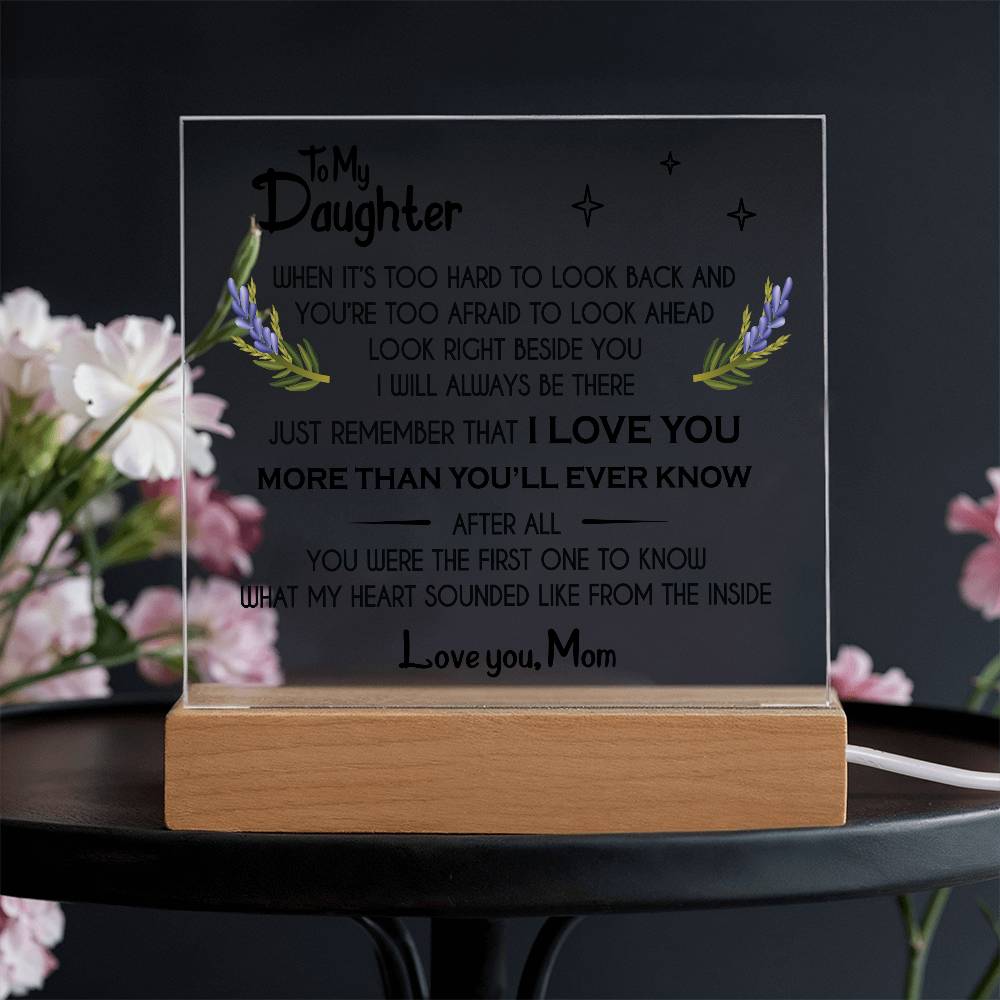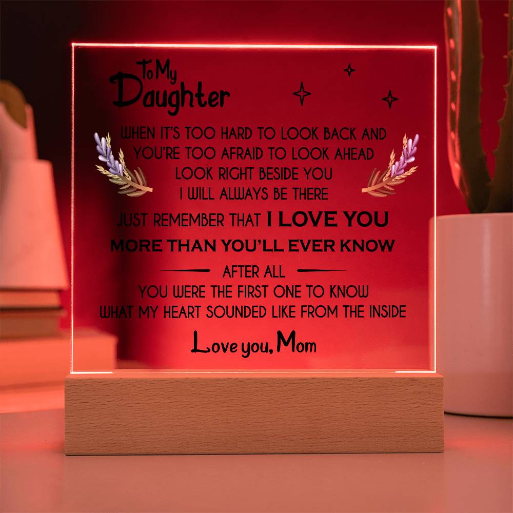 Your plaque will be crafted from premium acrylic with a professionally printed design for a polished look. It comes with a stylish wooden LED base, and you can choose between a USB plug-in option OR a cordless battery-operated option (requires 2 AAA batteries, not included). Both LED bases feature 7 vibrant colors, allowing the user to customize the lighting with various color changes and dynamic cycles.