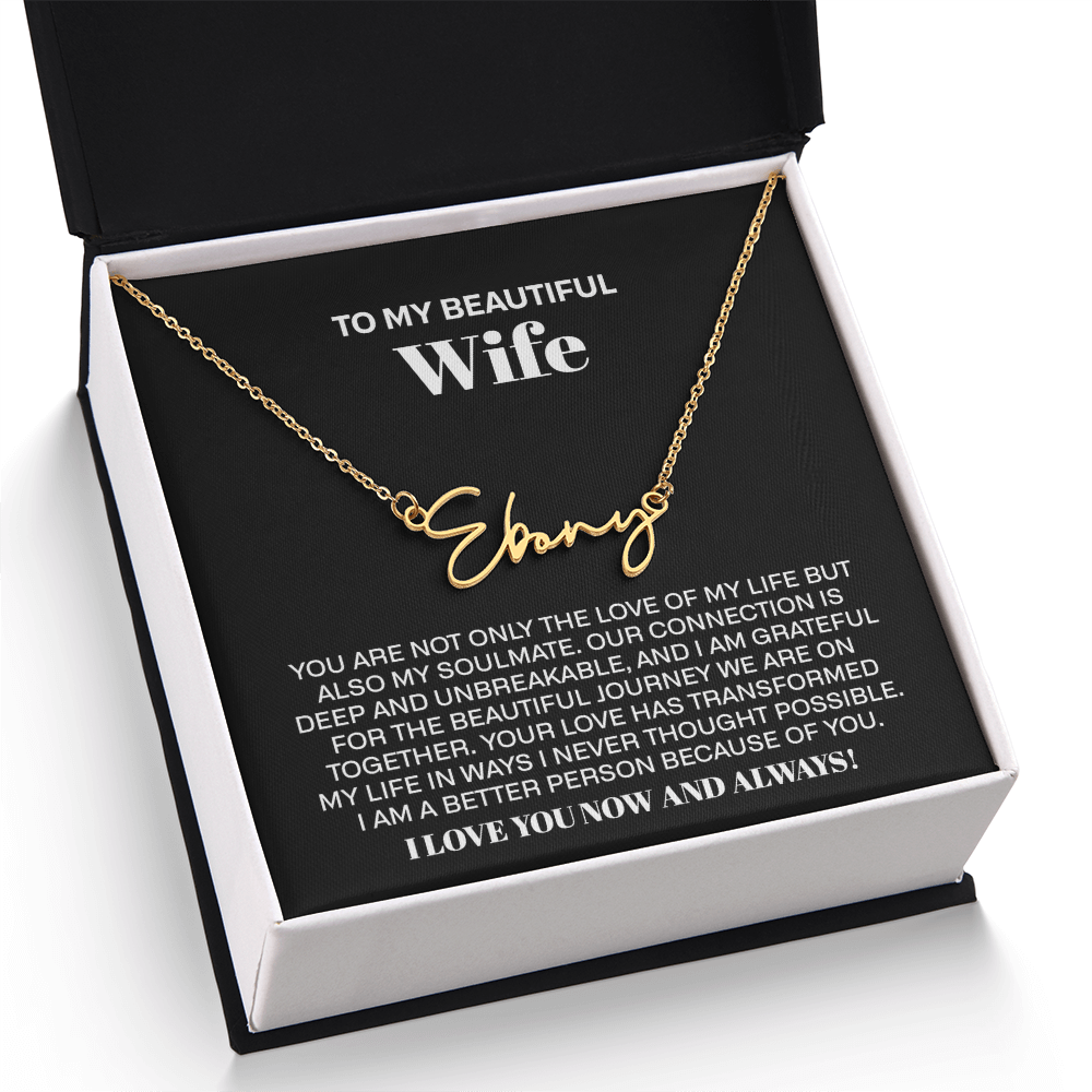 Looking to give your loved one a stylish and personalized gift that will melt their heart? Check out our Signature Style Name Necklace! This adorable custom necklace features a contemporary font that is sure to become a favorite accessory! From a heart-warming holiday present, special occasion gift, or just because, this unique necklace adds a trendy touch to any outfit