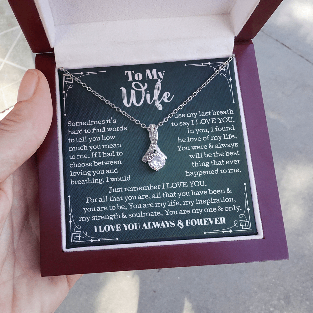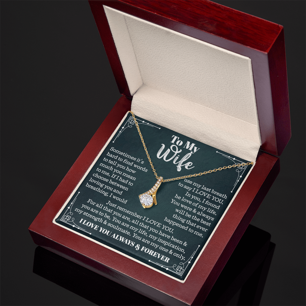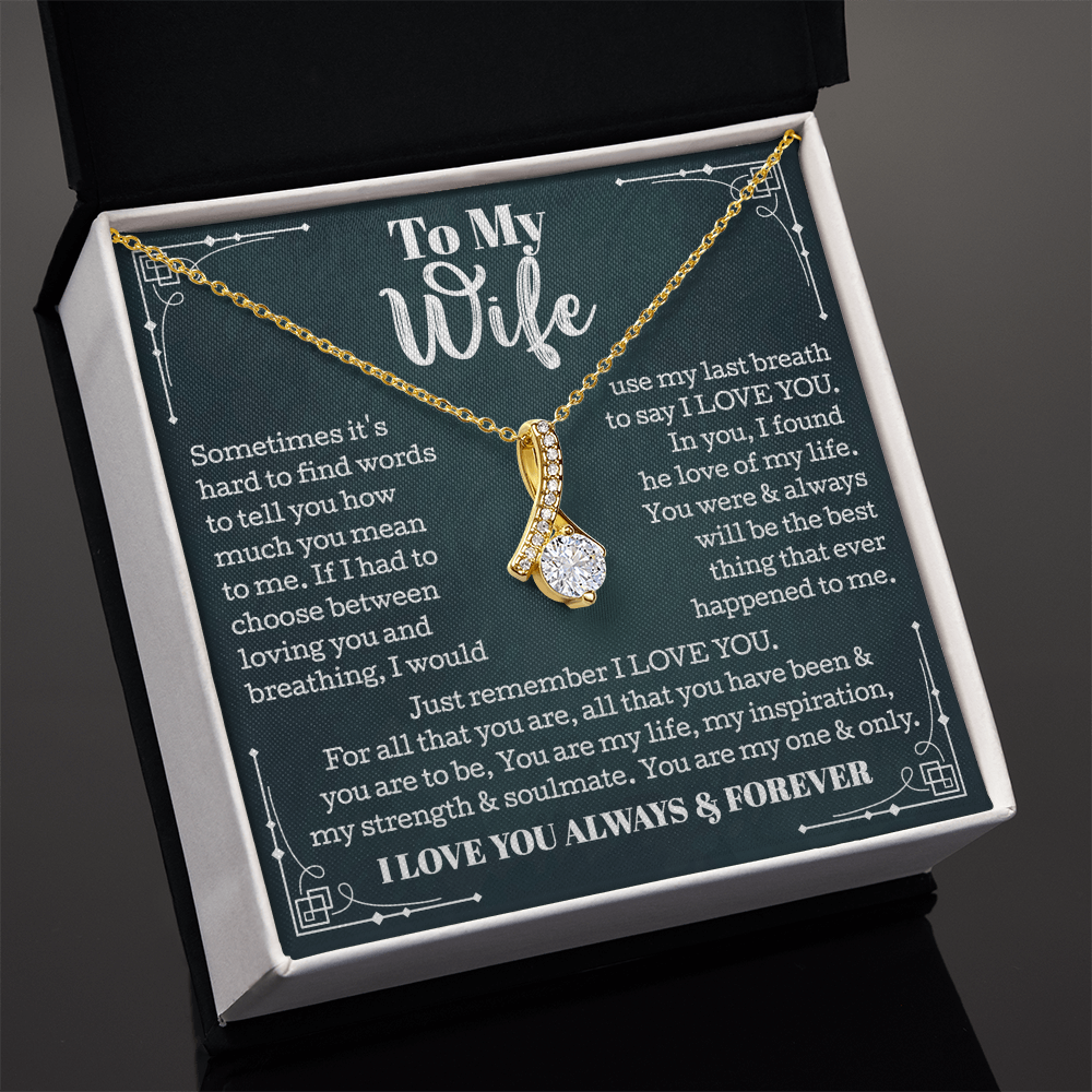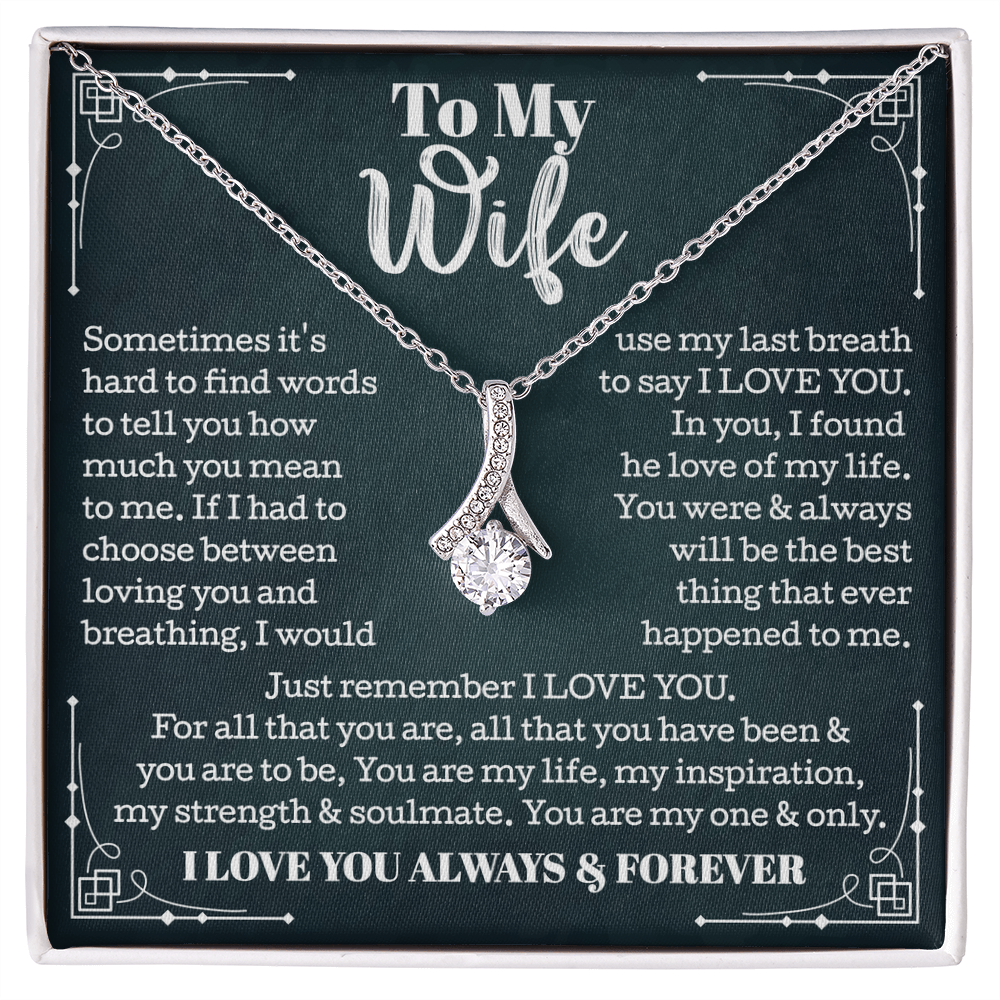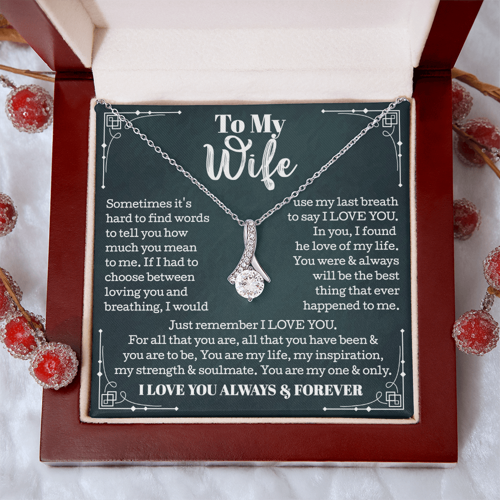 Imagine her reaction when she opens this stunning gift! The Alluring Beauty necklace features a petite ribbon shaped pendant that is sure to dazzle your special someone. Whether it's a birthday or anniversary, make sure to get her a gift she will love for years to come.