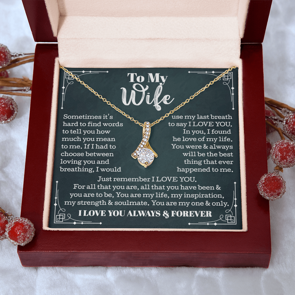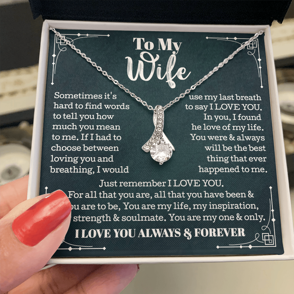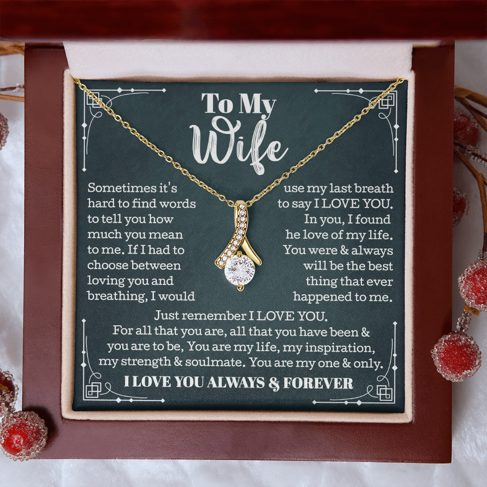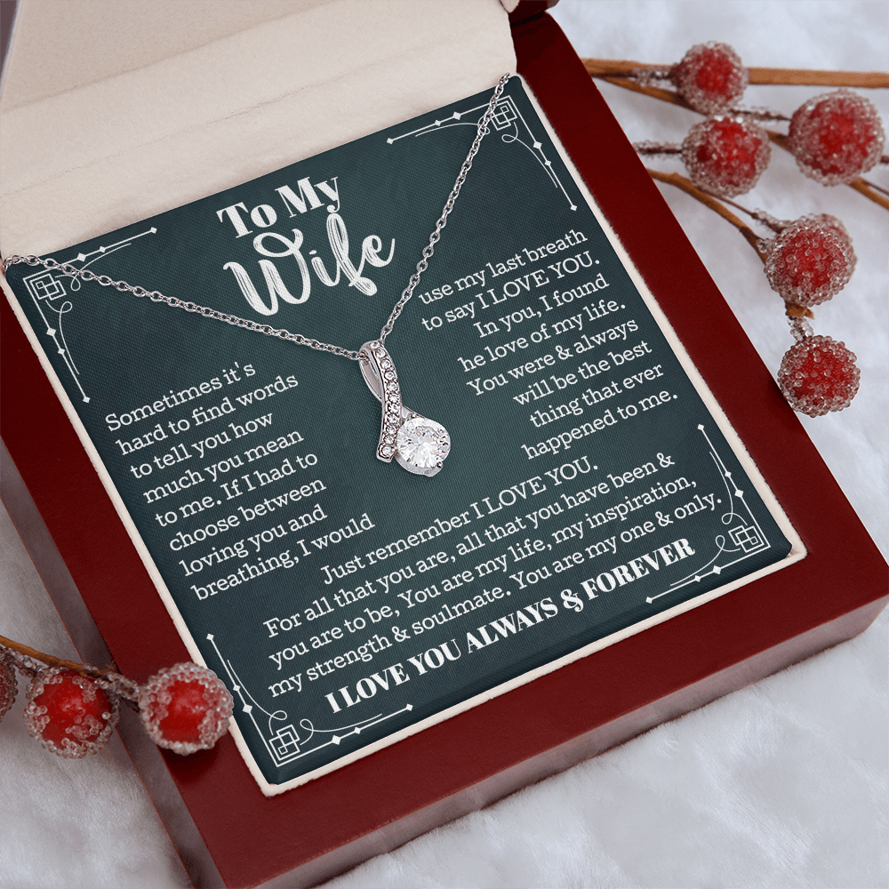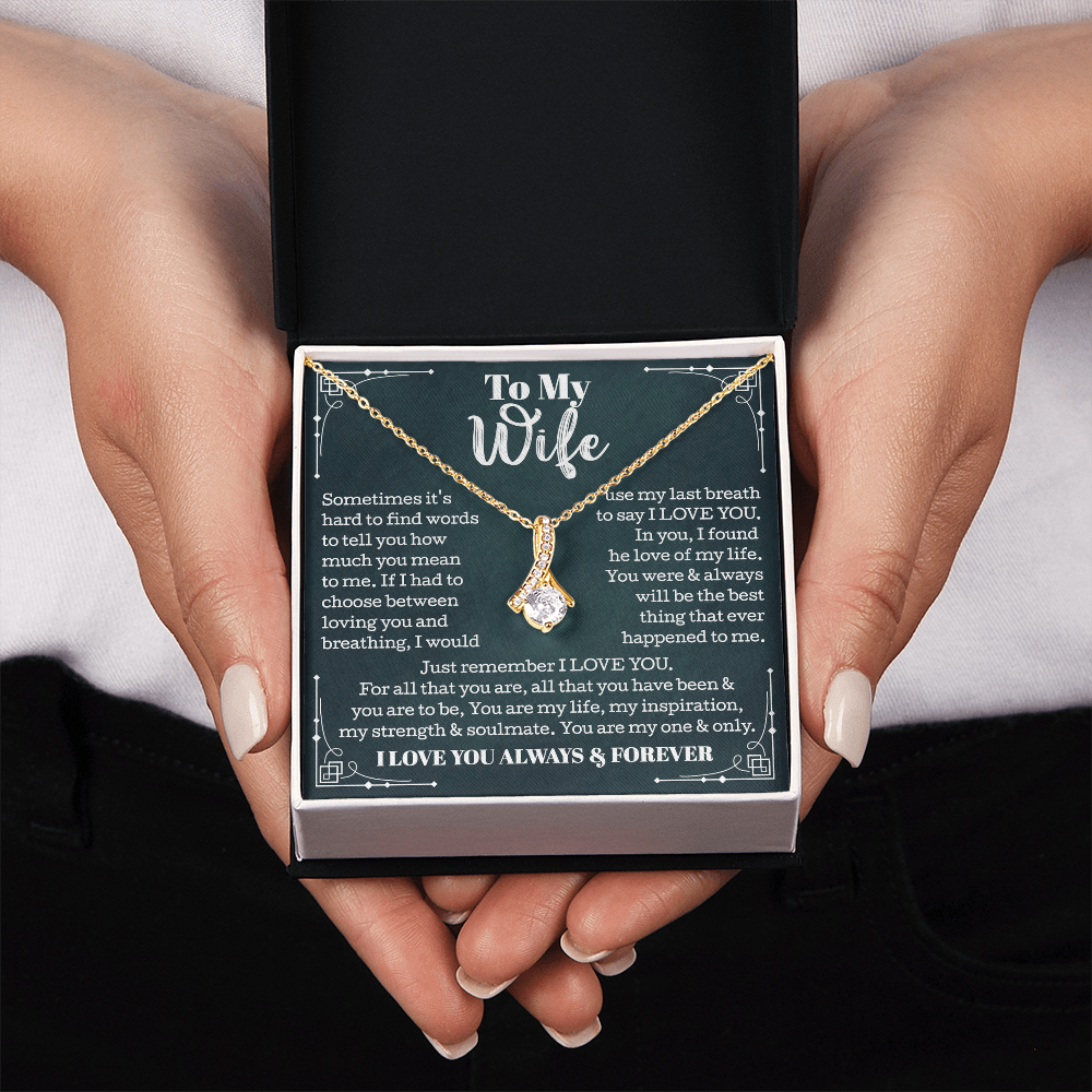 Imagine her reaction when she opens this stunning gift! The Alluring Beauty necklace features a petite ribbon shaped pendant that is sure to dazzle your special someone. Whether it's a birthday or anniversary, make sure to get her a gift she will love for years to come.