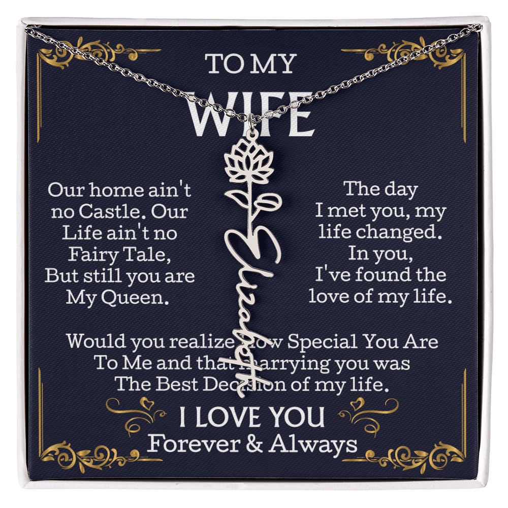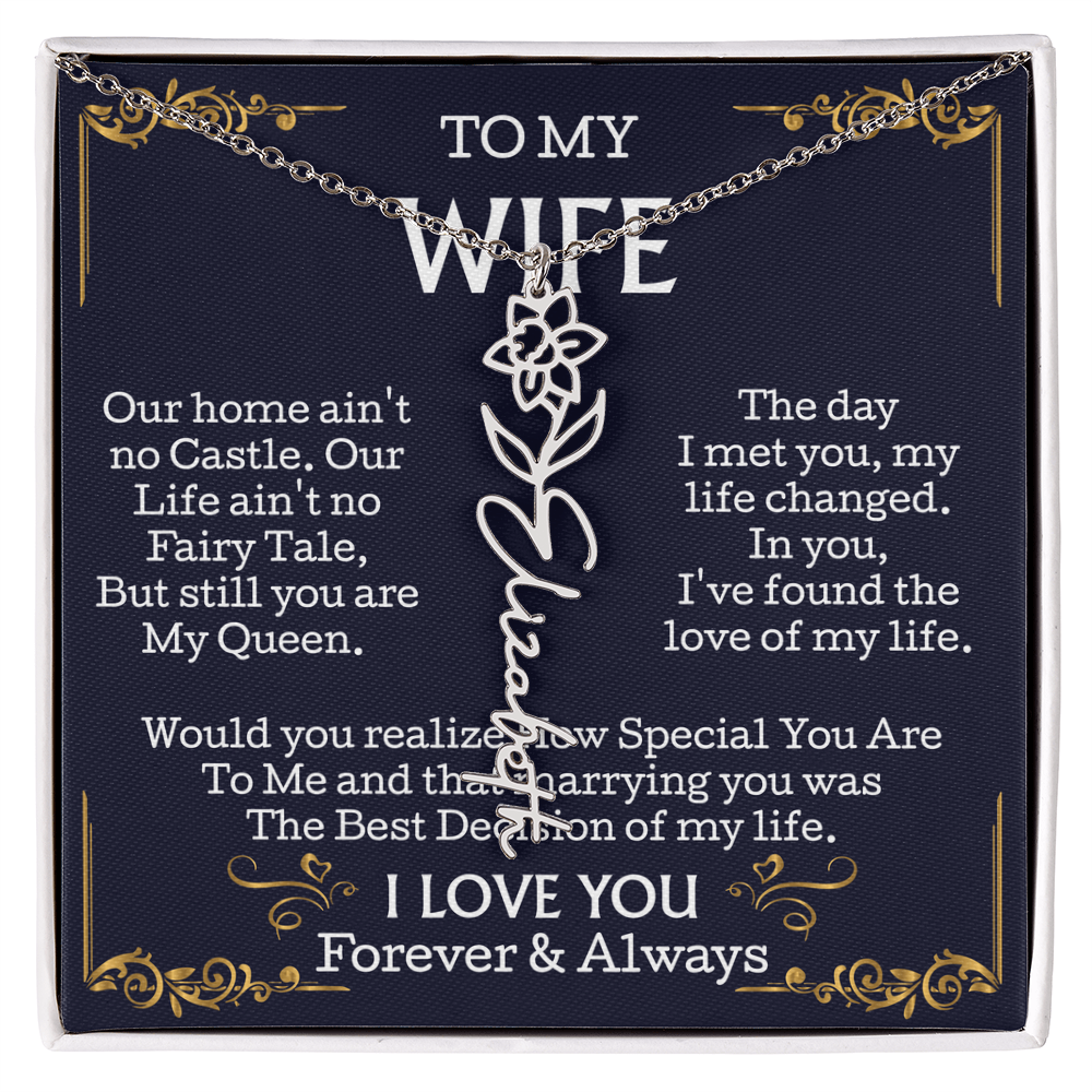 Need a gift that's as unique as she is? Then look no further than our Flower Name Necklace! With a customizable birth flower design, this necklace is a meaningful addition to any jewelry collection. Whether you're dressing up for a special occasion or simply want to add some flair to your everyday look, this necklace is perfect for your special someone. Handcrafted from high-quality materials, it is both stylish and durable. So why wait? Personalize your own floral name necklace today!