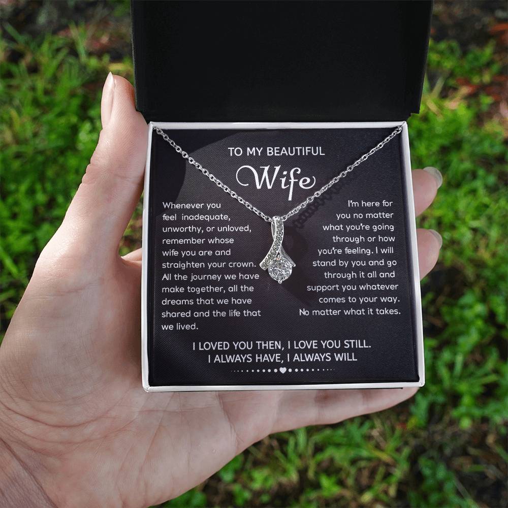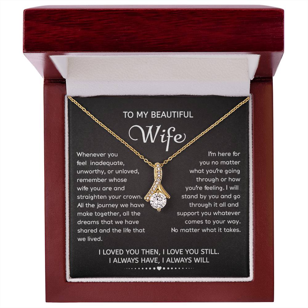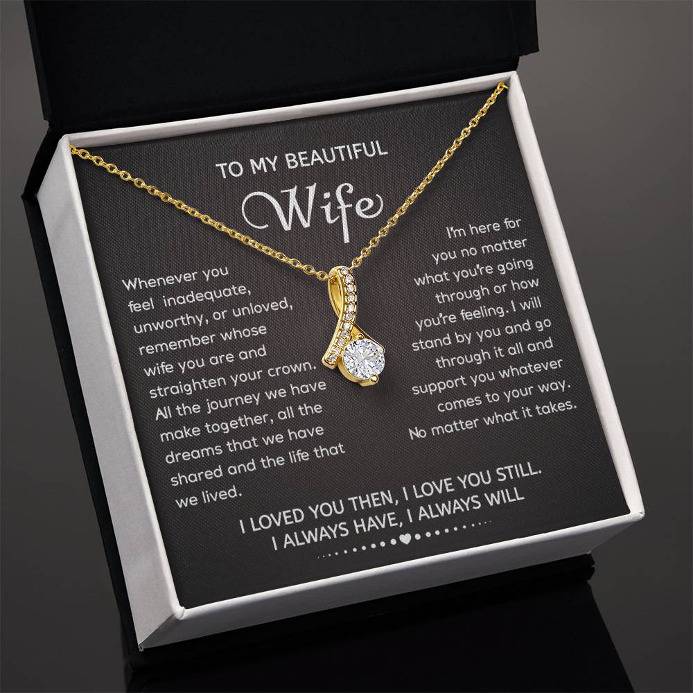 Imagine her reaction when she opens this stunning gift! The Alluring Beauty necklace features a petite ribbon shaped pendant that is sure to dazzle your special someone. Whether it's a birthday or anniversary, make sure to get her a gift she will love for years to come.