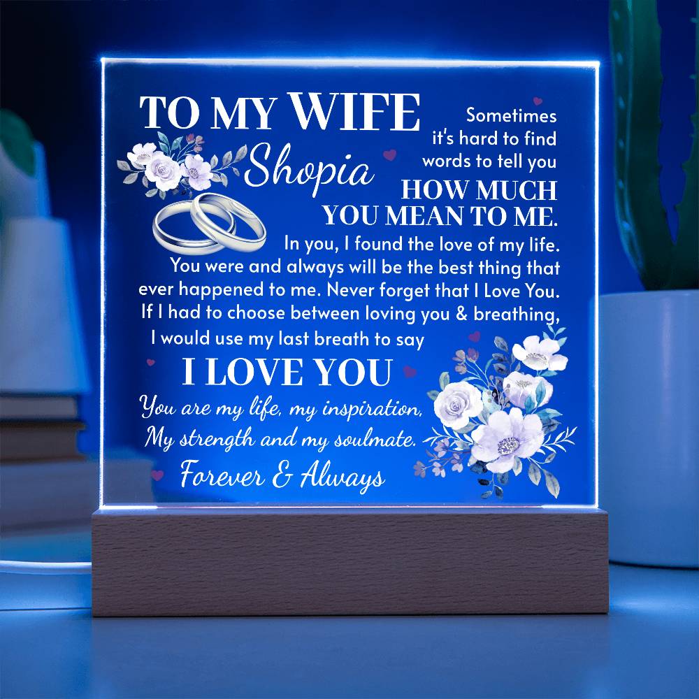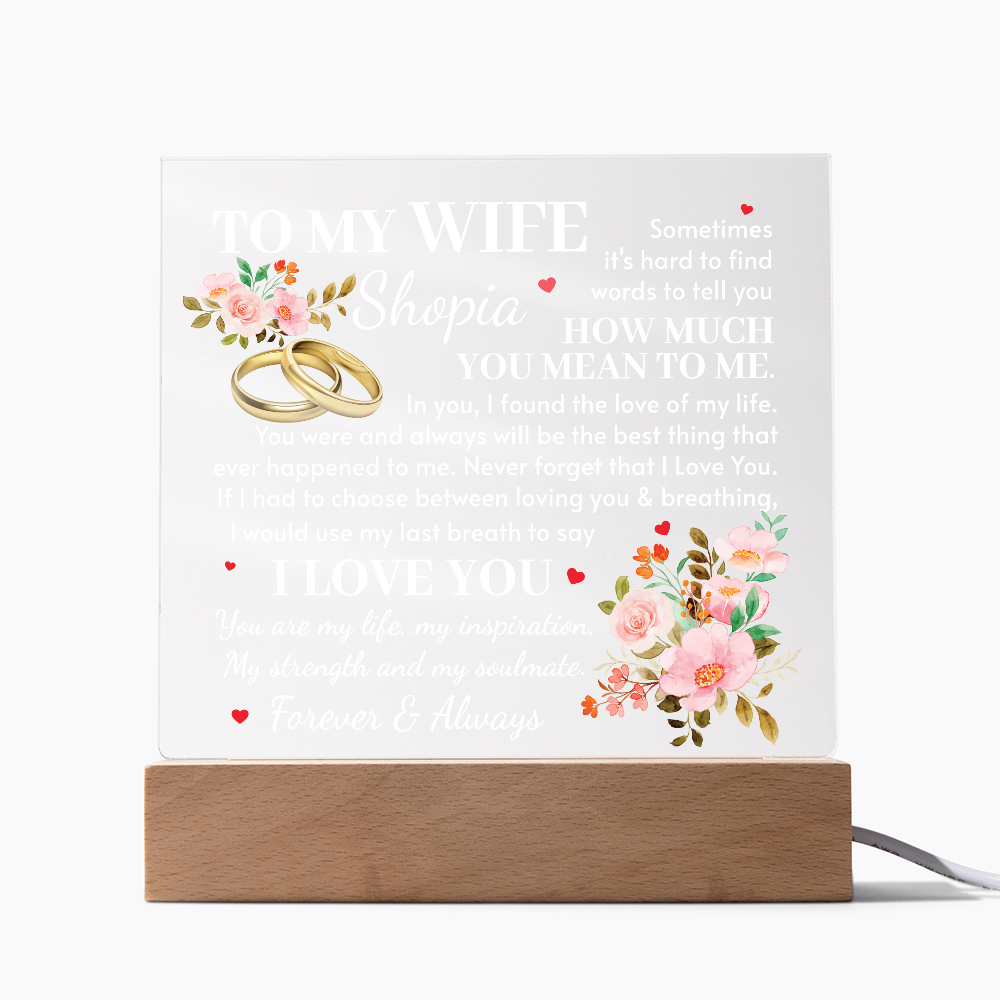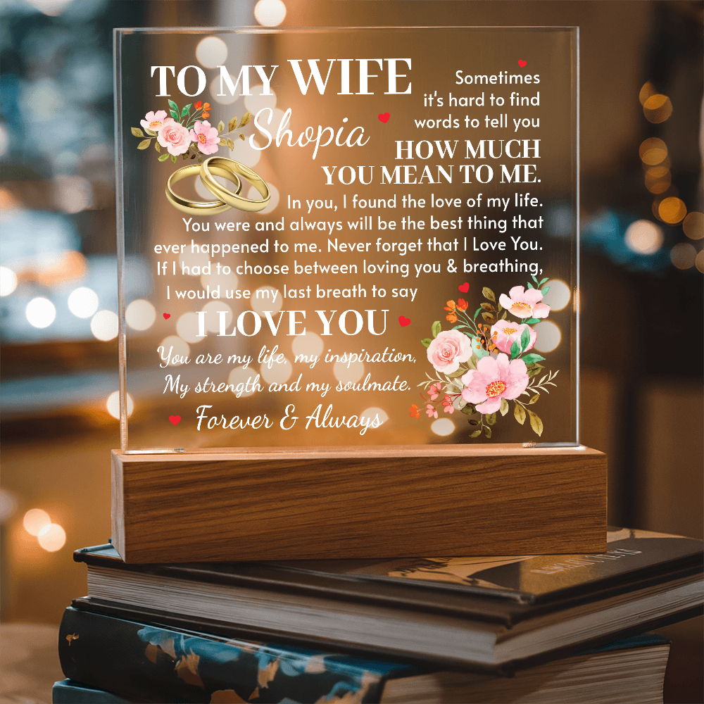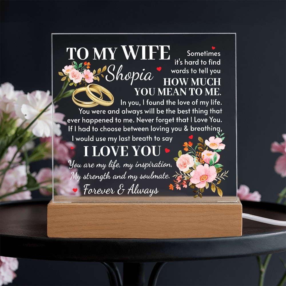 Your plaque will be crafted from premium acrylic with a professionally printed design for a polished look. It comes with a stylish wooden LED base, and you can choose between a USB plug-in option OR a cordless battery-operated option (requires 2 AAA batteries, not included). Both LED bases feature 7 vibrant colors, allowing the user to customize the lighting with various color changes and dynamic cycles.