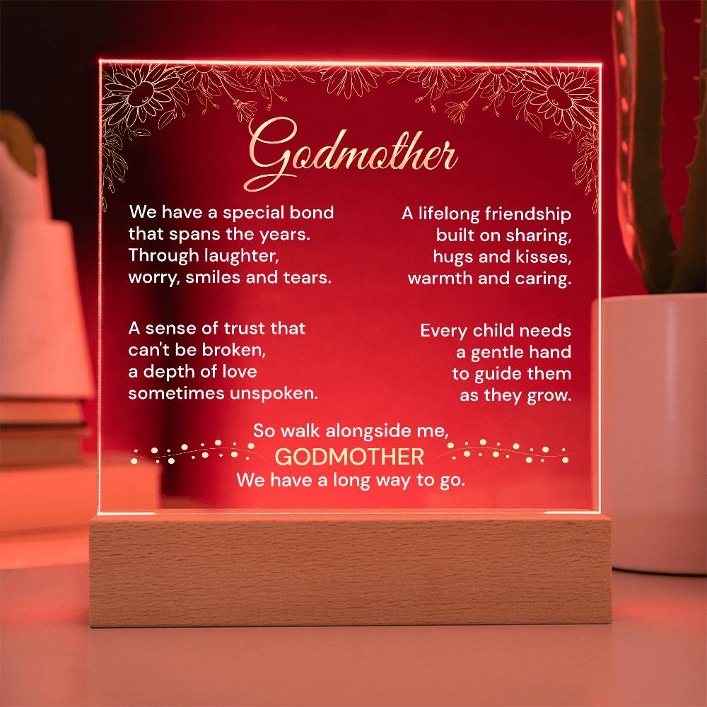Your plaque will be crafted from premium acrylic with a professionally printed design for a polished look. It comes with a stylish wooden LED base, and you can choose between a USB plug-in option OR a cordless battery-operated option (requires 2 AAA batteries, not included). Both LED bases feature 7 vibrant colors, allowing the user to customize the lighting with various color changes and dynamic cycles.