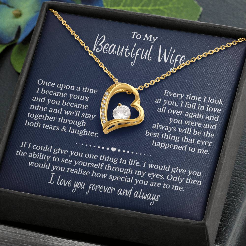 The dazzling Forever Love Necklace is sure to make her heart melt! This necklace features a stunning 6.5mm CZ crystal surrounded by a polished heart pendant embellished with smaller crystals to add extra sparkle and shine. Beautifully crafted with either a white gold or yellow gold finish, be sure to give her a classic gift she can enjoy everyday.