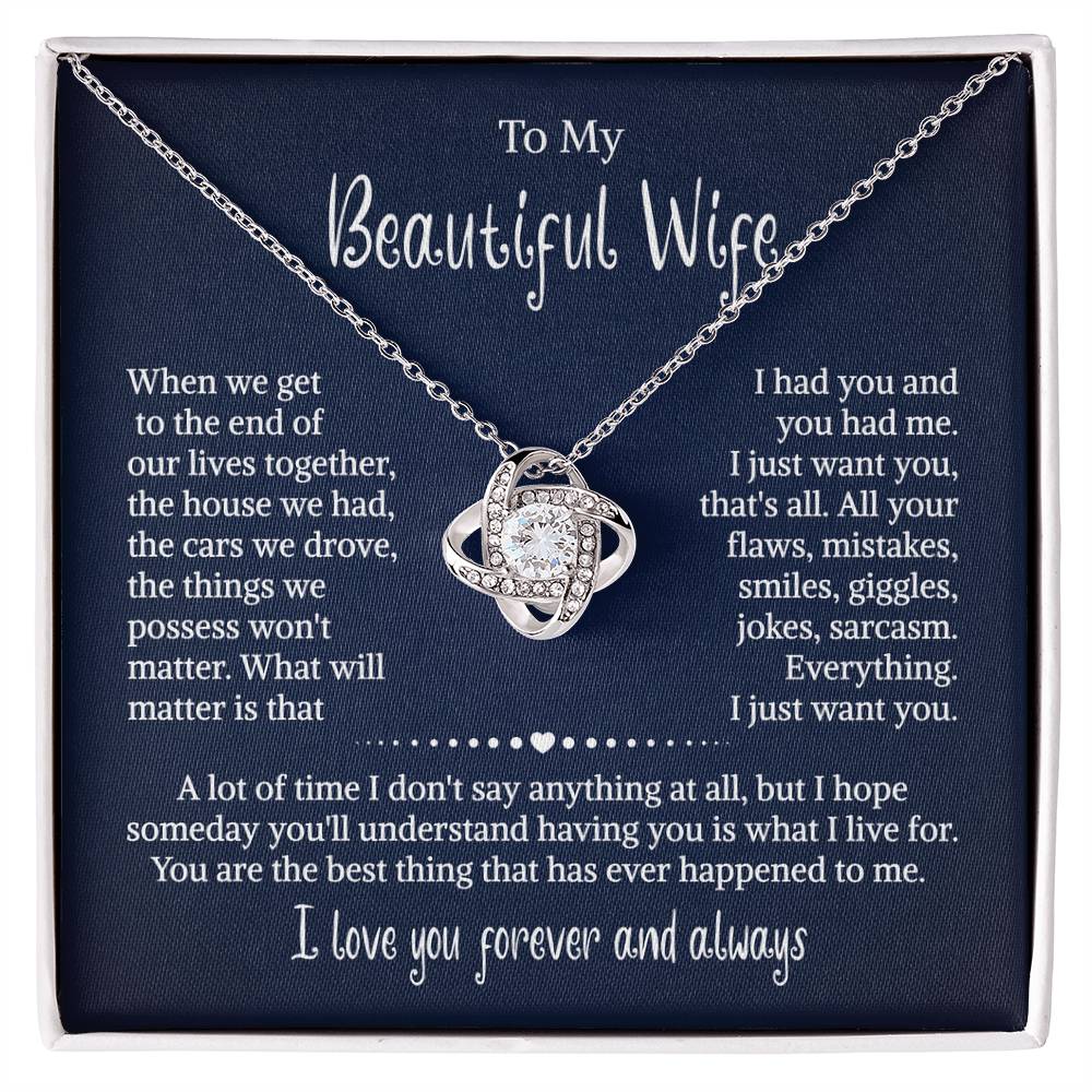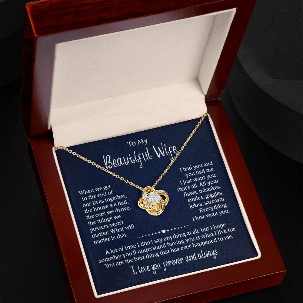 Imagine her reaction receiving this beautiful Love Knot Necklace. Representing an unbreakable bond between two souls, this piece features a beautiful pendant embellished with premium cubic zirconia crystals. Surprise your loved one with this gorgeous gift today!