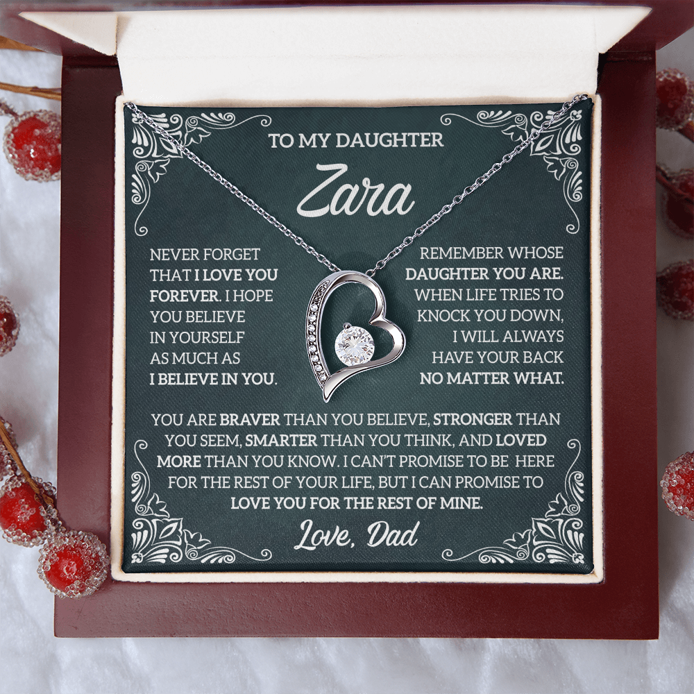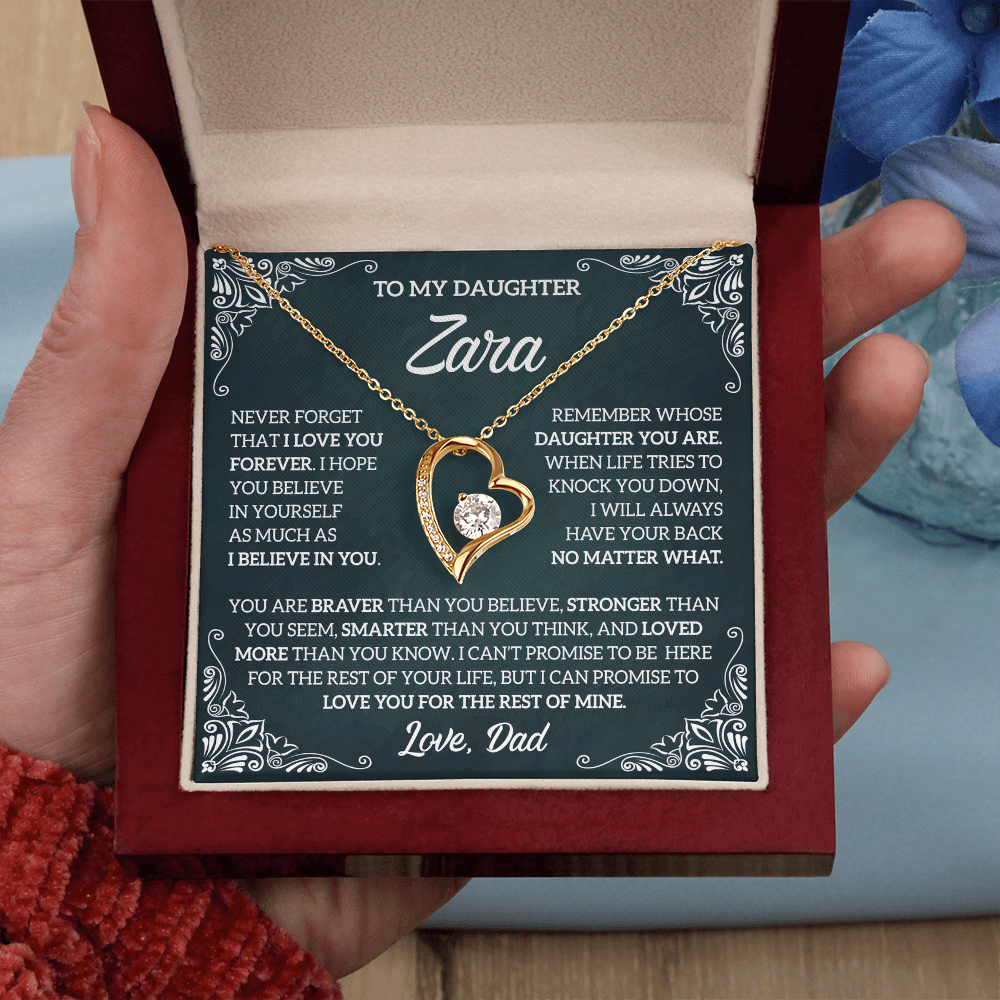 The dazzling Forever Love Necklace is sure to make her heart melt! This necklace features a stunning 6.5mm CZ crystal surrounded by a polished heart pendant embellished with smaller crystals to add extra sparkle and shine. Beautifully crafted with either a white gold or yellow gold finish, be sure to give her a classic gift she can enjoy everyday.